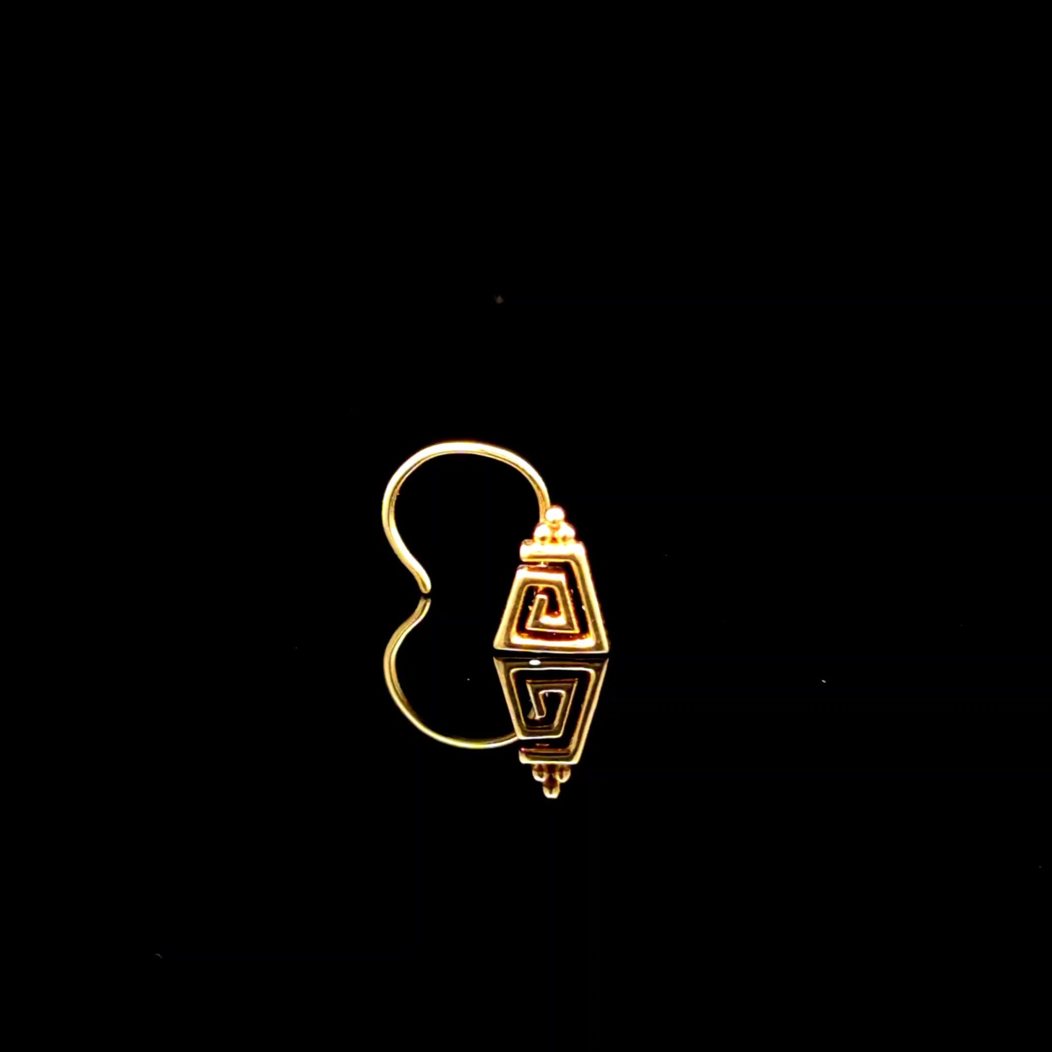 A spiral trapezium with 3 dots, this Indian tribal inspired design is a unique twist to the regular gold nosepins, with a Boho touch. Crafted in solid 14k or 18k gold, it is sure to make a bold statement.