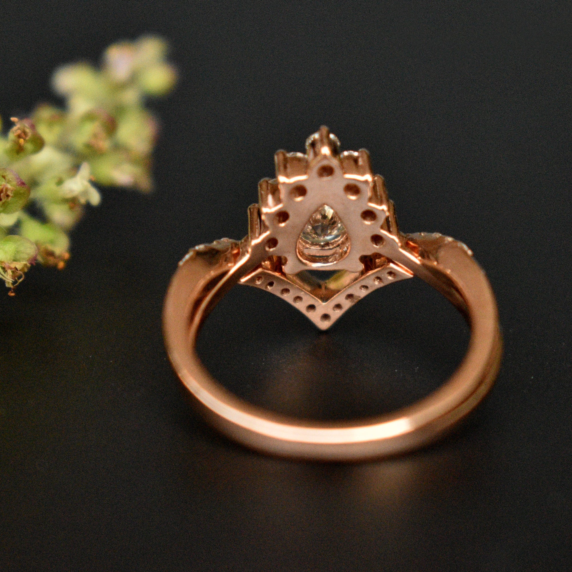 1/2 Carat Pear Diamond Crossover Wedding Ring Set in 14K Rose Gold, US 4.5