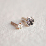 14K Solid Gold 16g Externally Threaded Flatback Diamond Stud