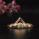 Double chevron, one studded and one plain. This handcrafted ring will enhance the beauty of your engagement ring multifold :)