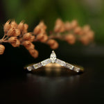 A gorgeous and feminine version of V ring with 3 pear cut diamonds, this one of a kind cheron V ring will stack like a queen! Crafted in 14K Gold, this ring looks stunning worn by itself or stacked!