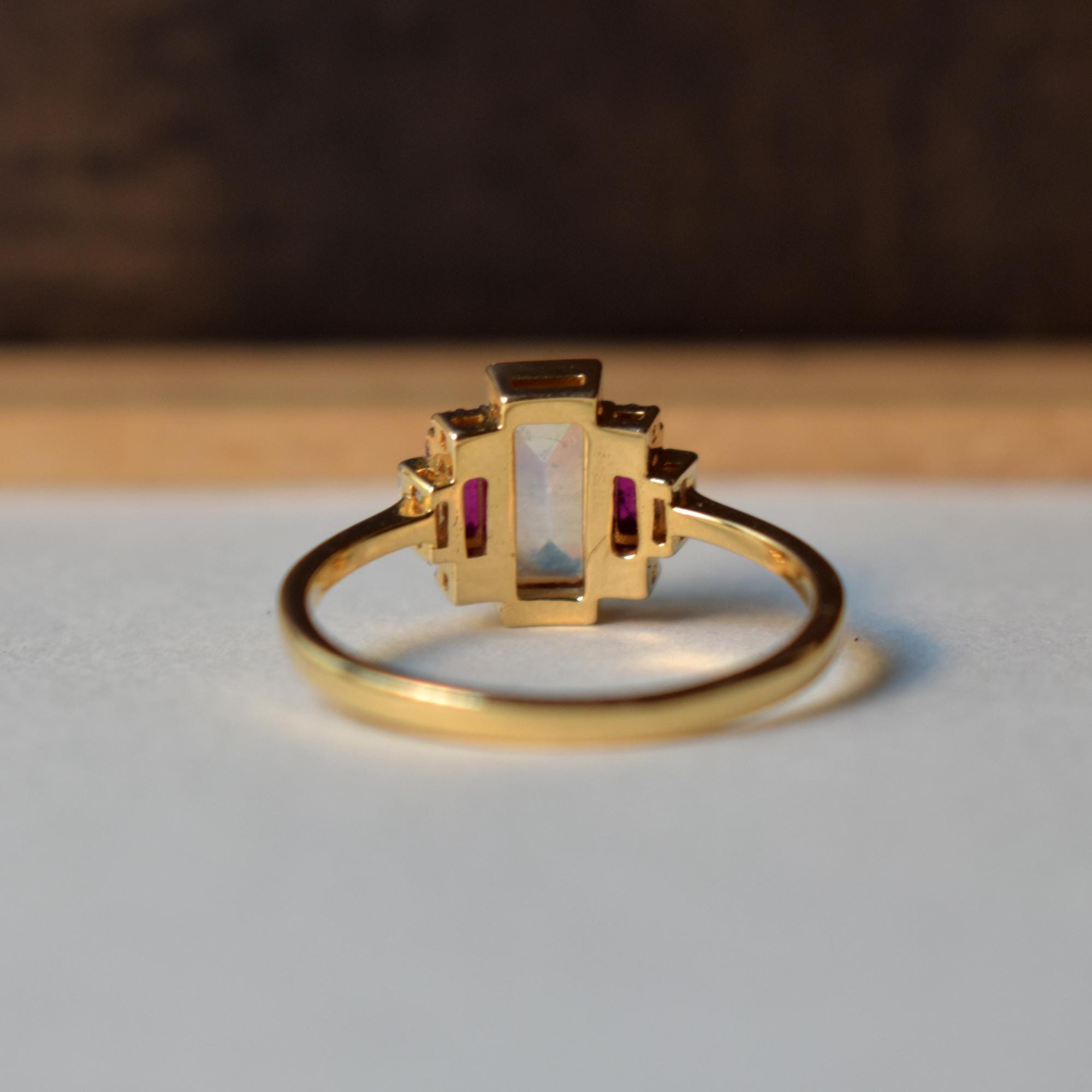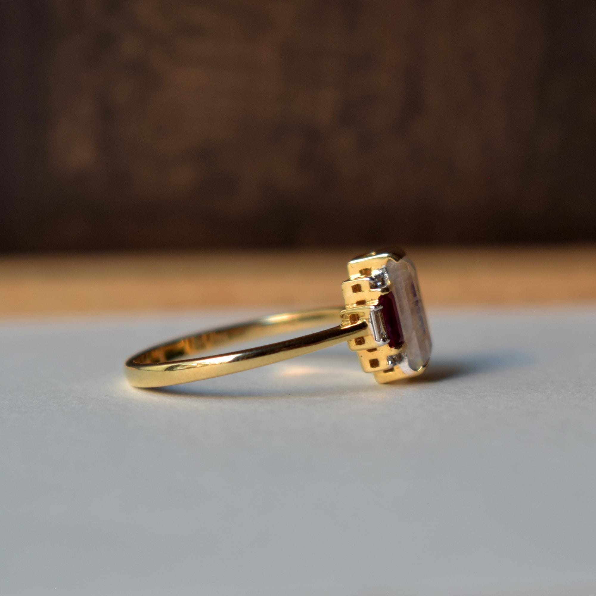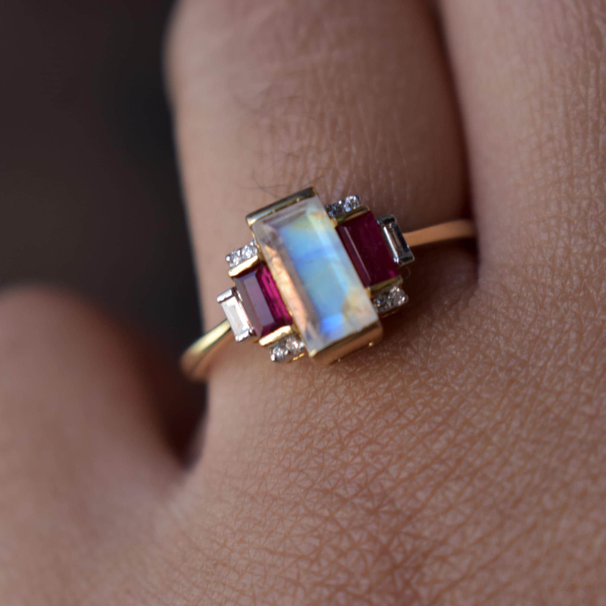 Natural Moonstone Ruby & Diamond Unique Geometric Ring