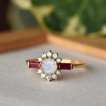 Natural Moonstone Ruby & Diamond Ring