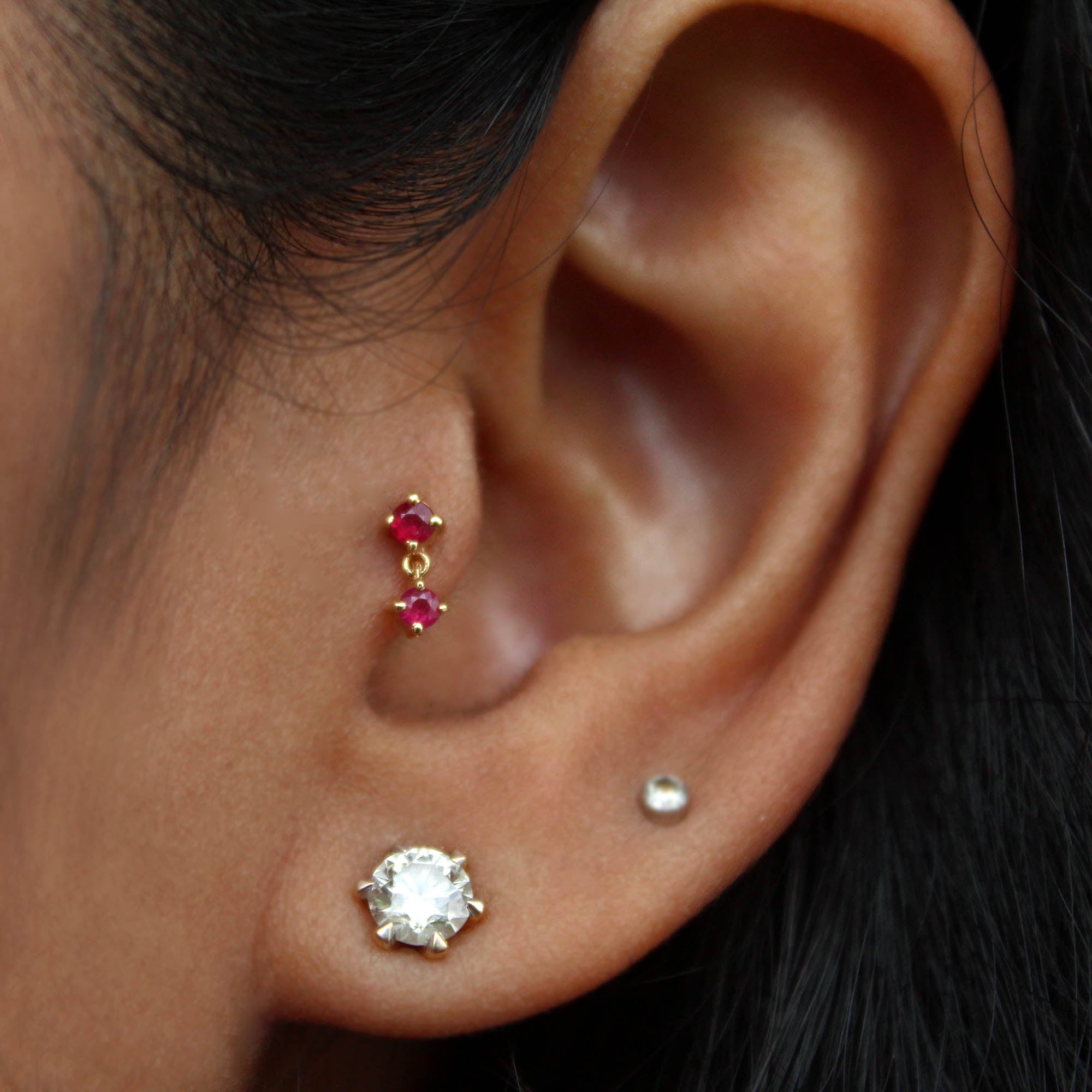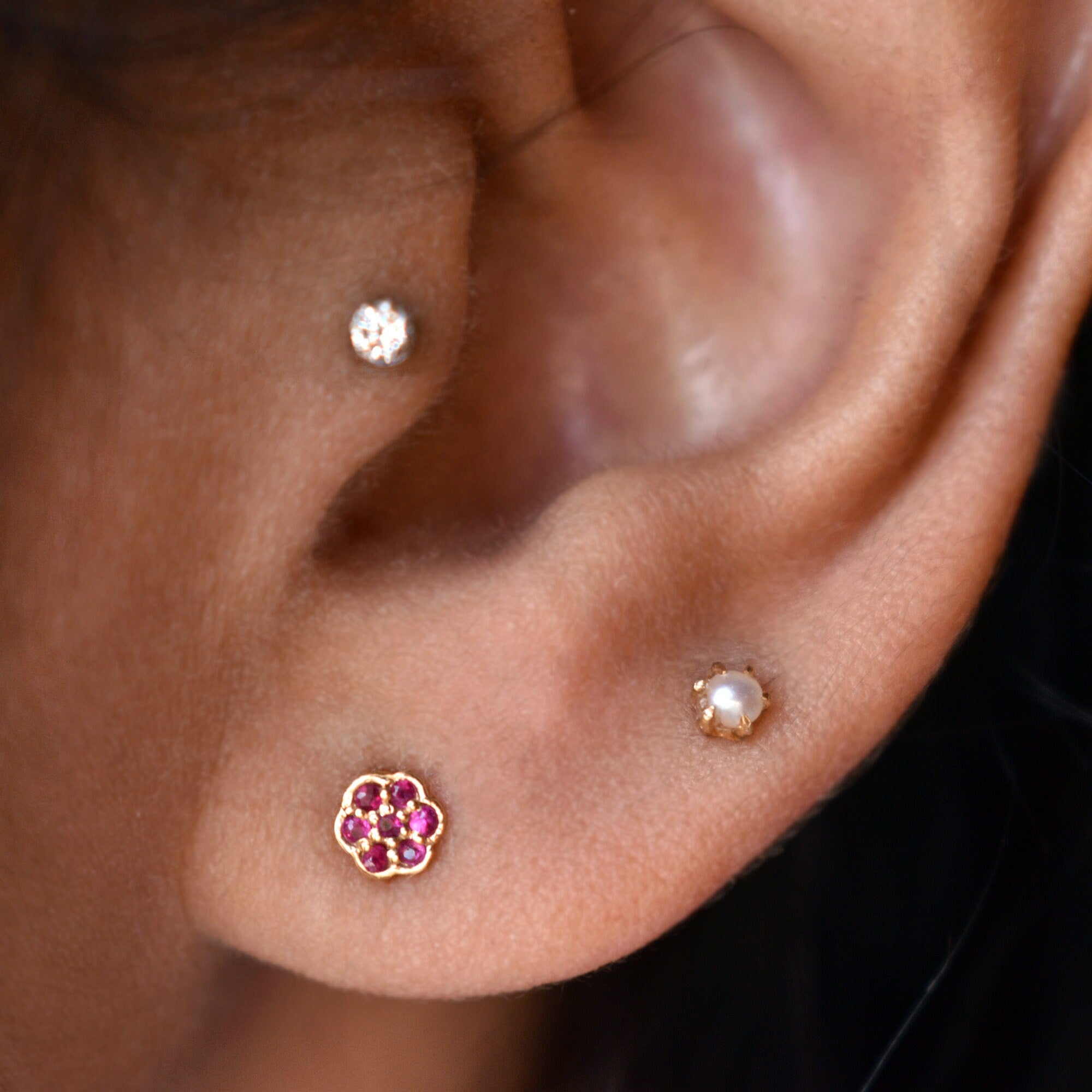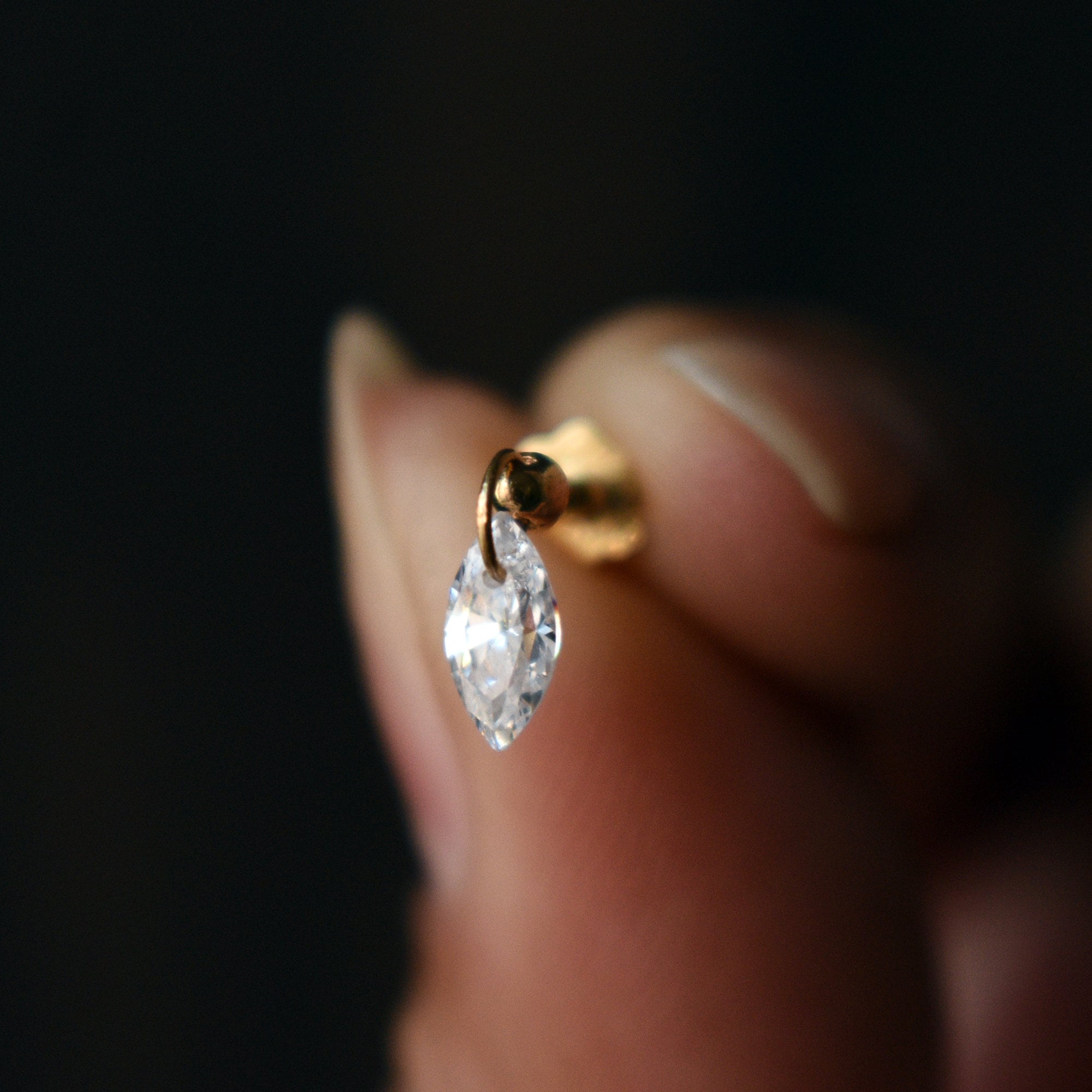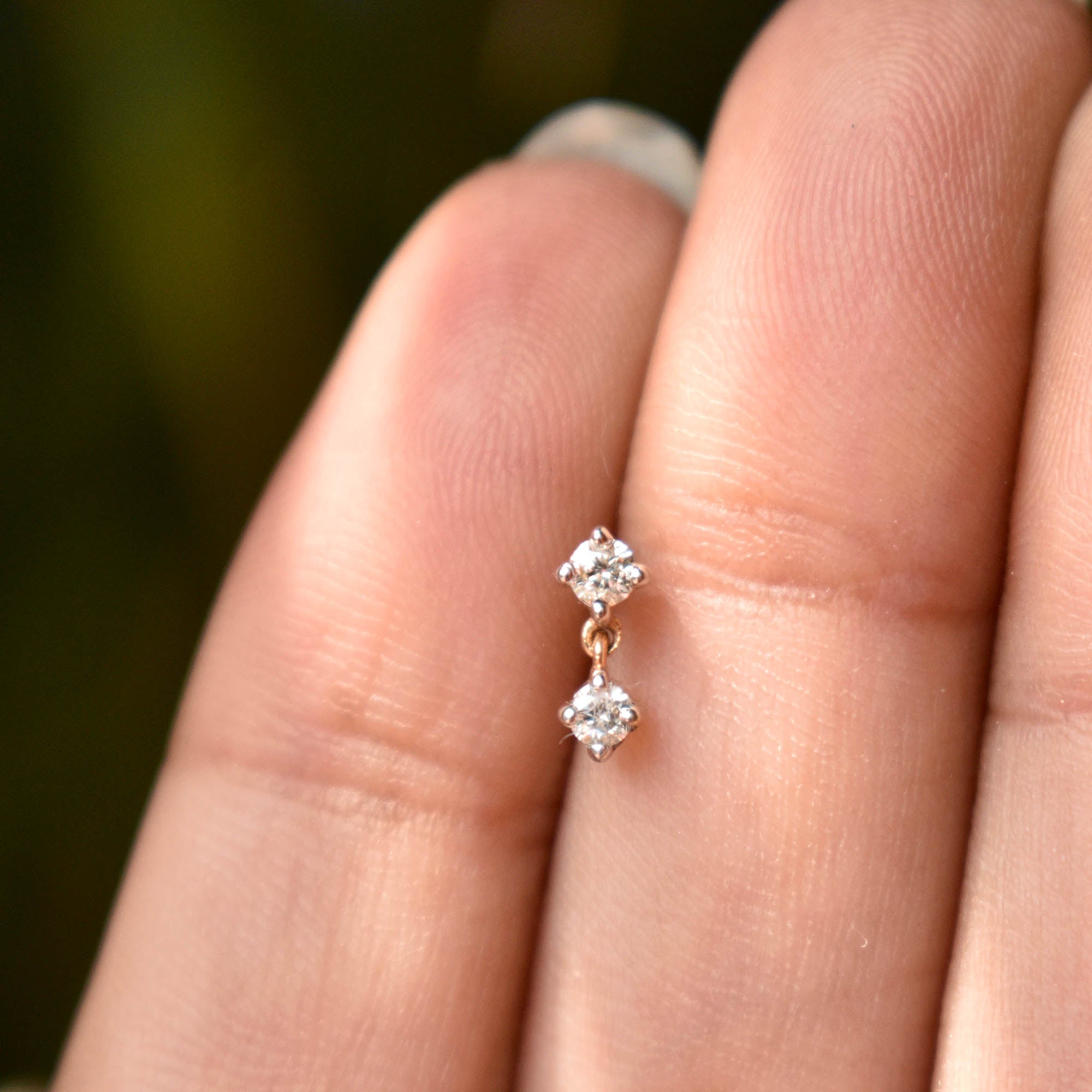16g Internally Threaded Flatback Diamond Stud, 14k Gold