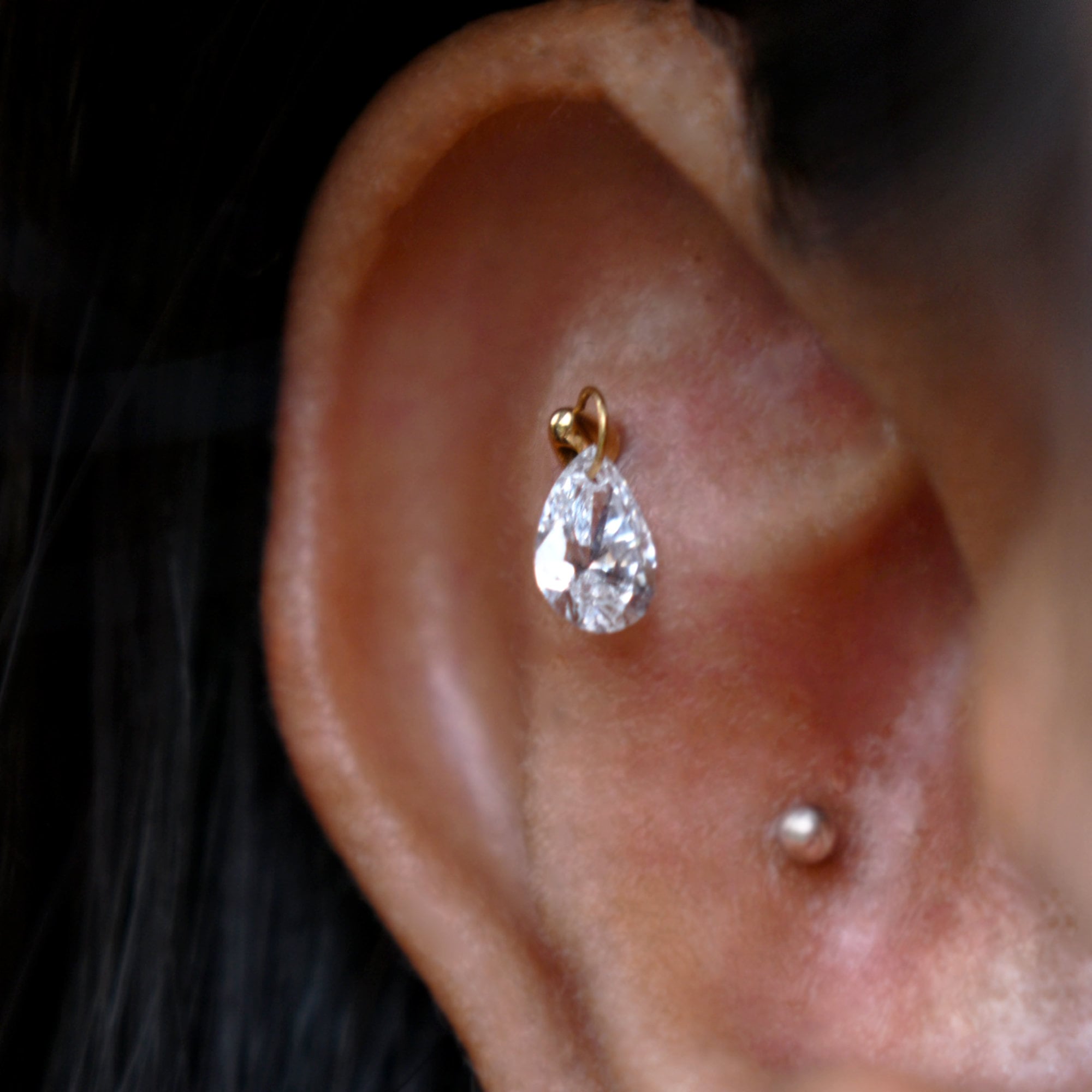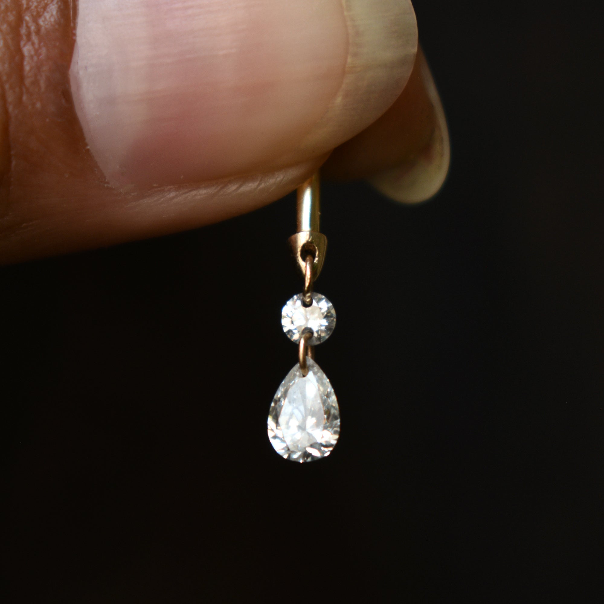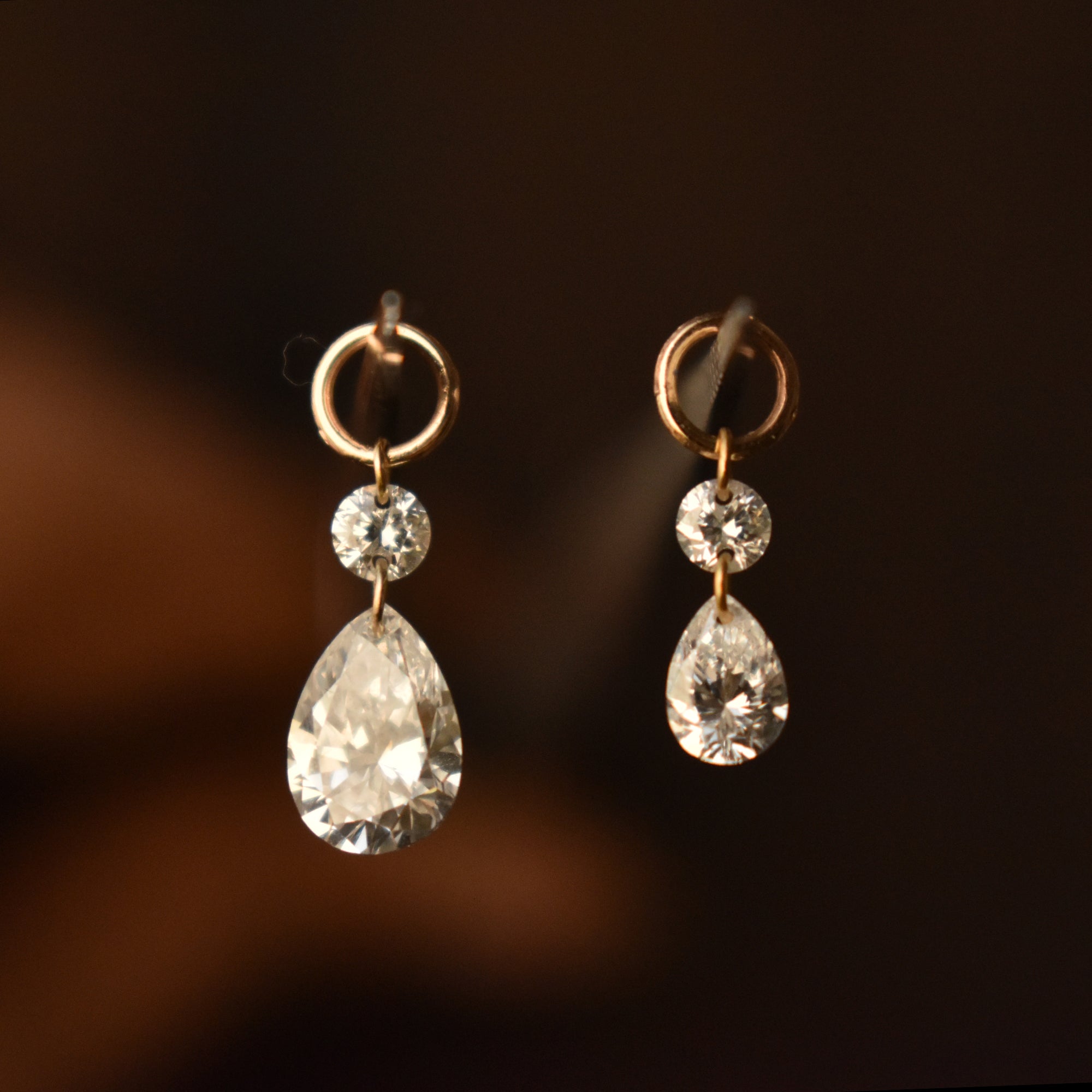 Round & Pear Lab Diamond Floating Dangle Stud, 2.7/5x3mm