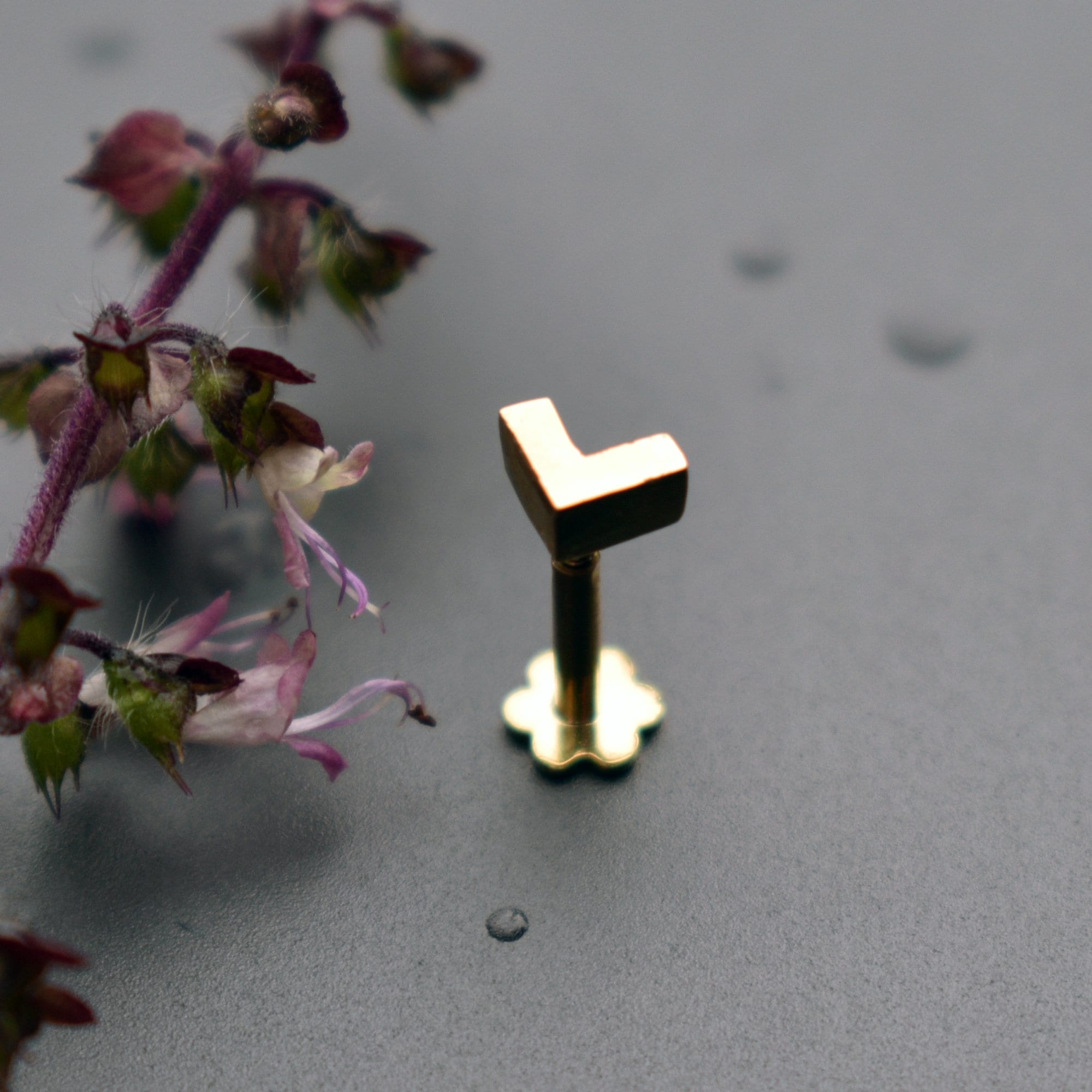 14K Solid Gold 16g Externally Threaded Flatback Diamond Stud