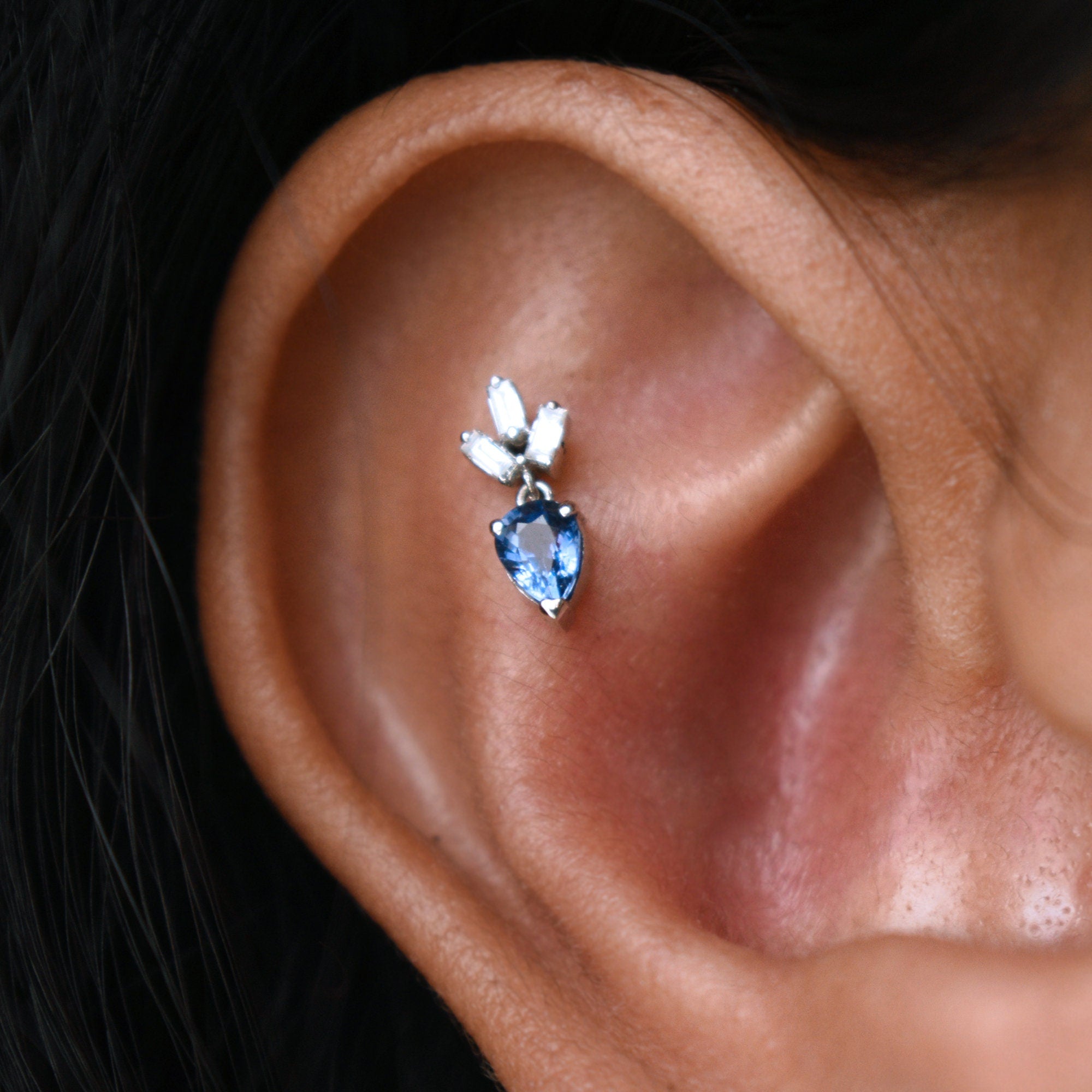 Natural Diamonds & Blue Sapphire Cluster Dangle Tiny Earring