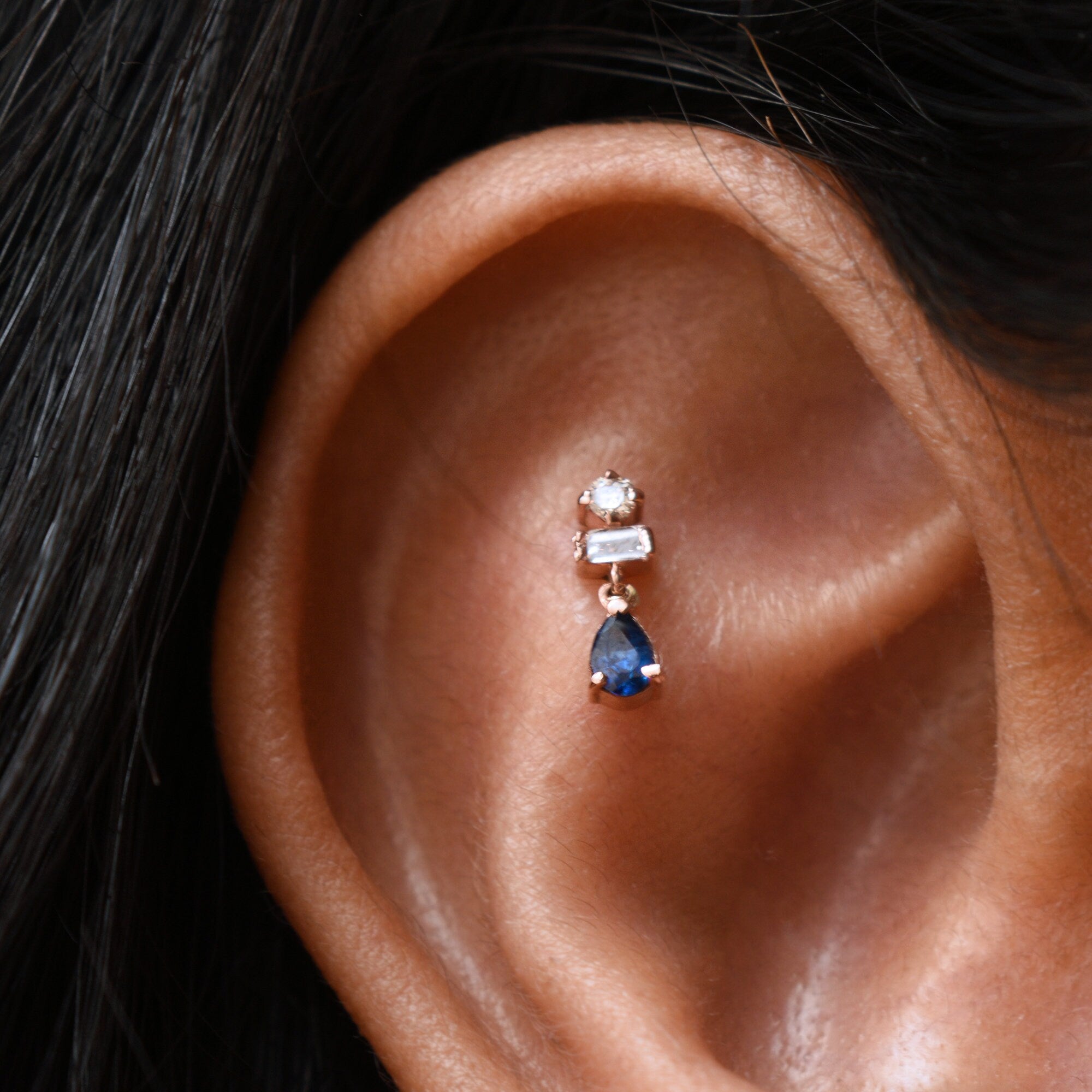 Natural Diamonds & Blue Sapphire Tiny Dangle Earring