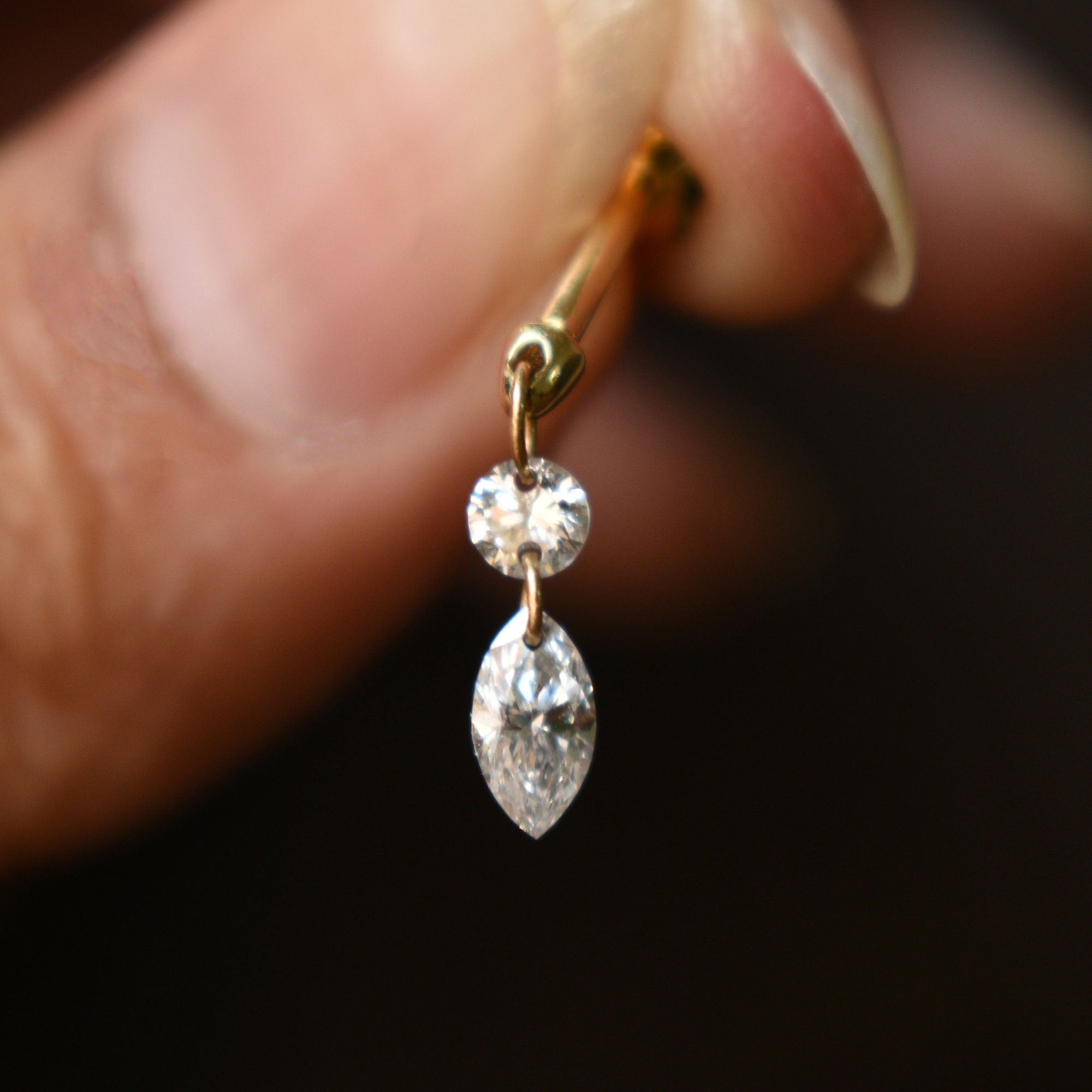 Natural Round & Marquise Diamond Floating Dangle Earring