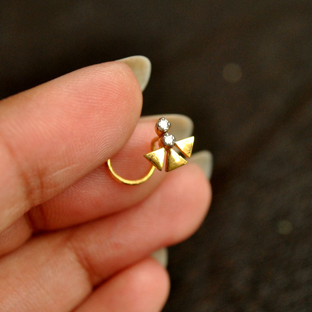 RESERVED FOR JAYA - 0.23 Ct F-G Vs,Natural Diamond Nose Pin, 20 Gauge C Twist, 18k Yellow Gold without Rhodium