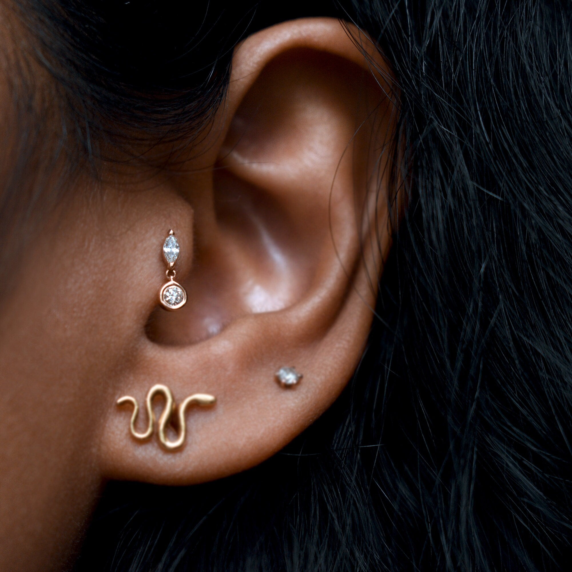 Round & Marquise Diamond Tiny Natural Dangle Earring