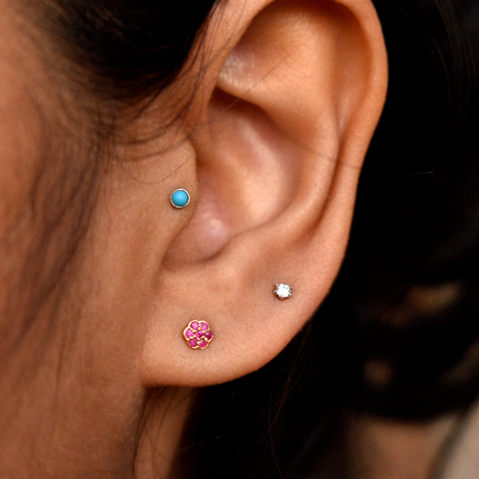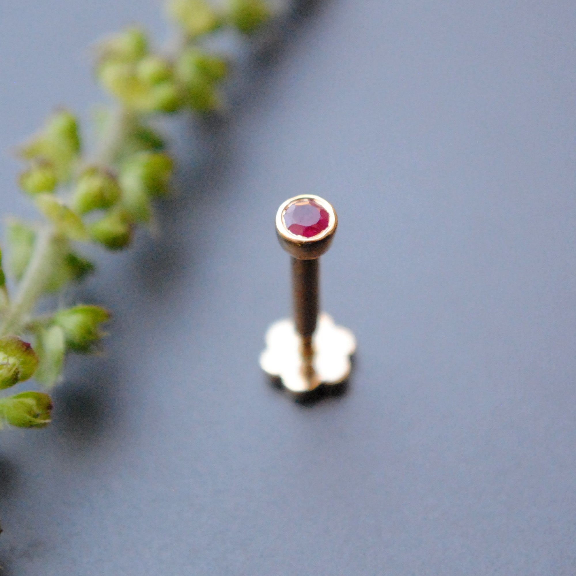 Natural Ruby & Diamond Floral Halo Ear Piercing Stud