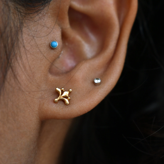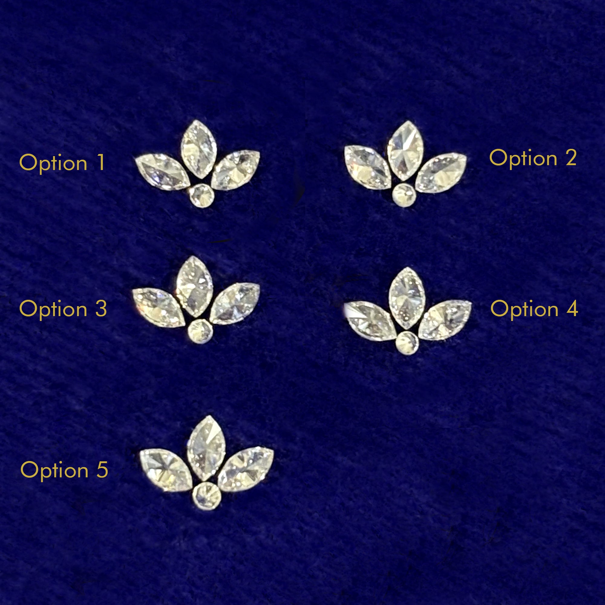 $435.003 Marquise cut diamonds forming a lotus, this tiny and subtle yet stunning diamond stud is perfect for your conch, helix or tragus piercing. It also makes for a mesmerizing...