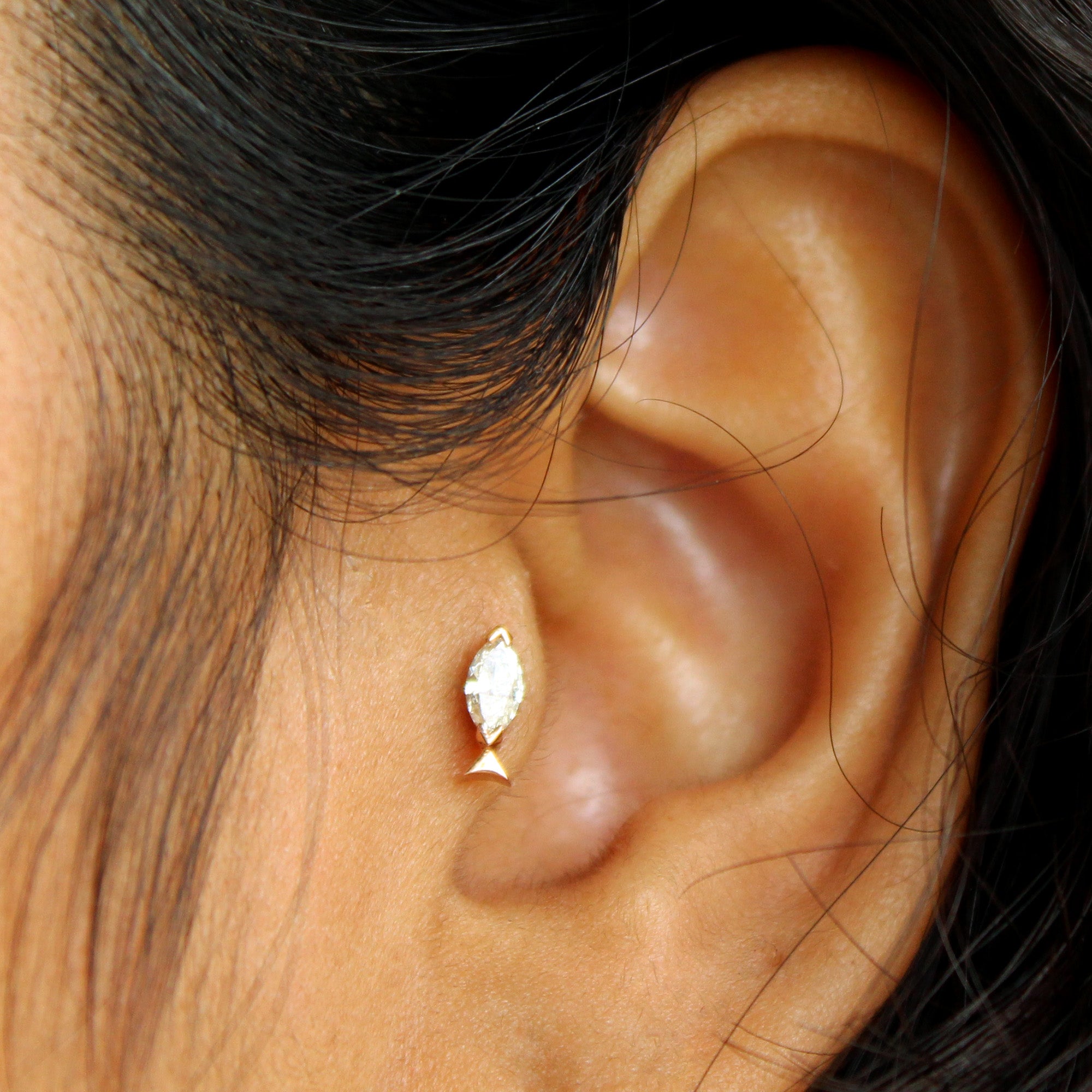 $330.00A simple 4x2mm marquise diamond, set with V prongs - a fresh take on the classic round diamond stud. Perfect for your lobe, cartilage, conch, helix or tragus piercing. It...