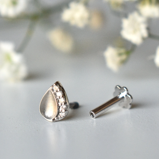 $215.00Concave matte finished tear drop, with diamond studded crescent on the edge, this piece is a subtle outdoorsy accessory for the bold impression. Suitable for any and all piercings. •...