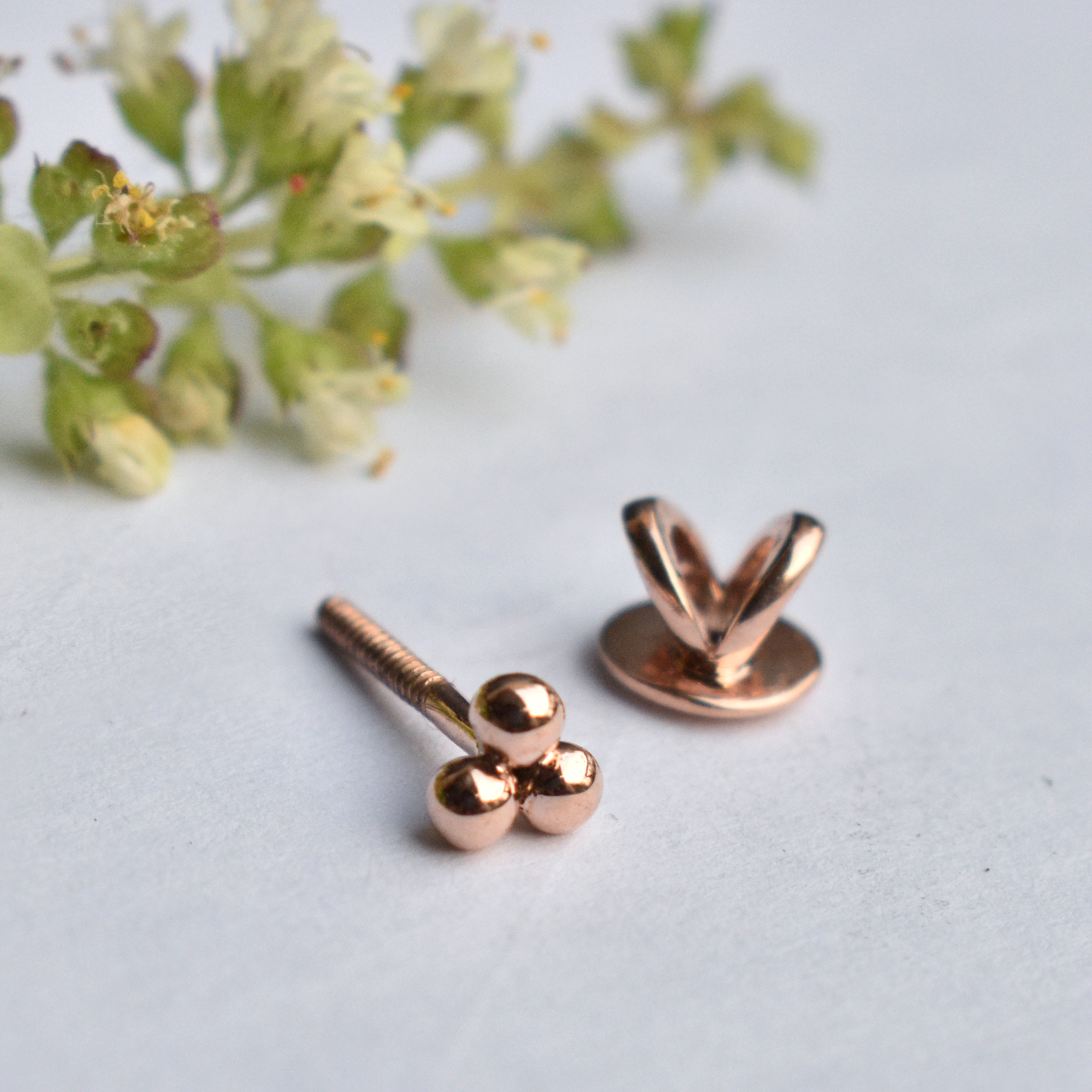 16g Internally Threaded Flatback Diamond Stud, 14k Gold