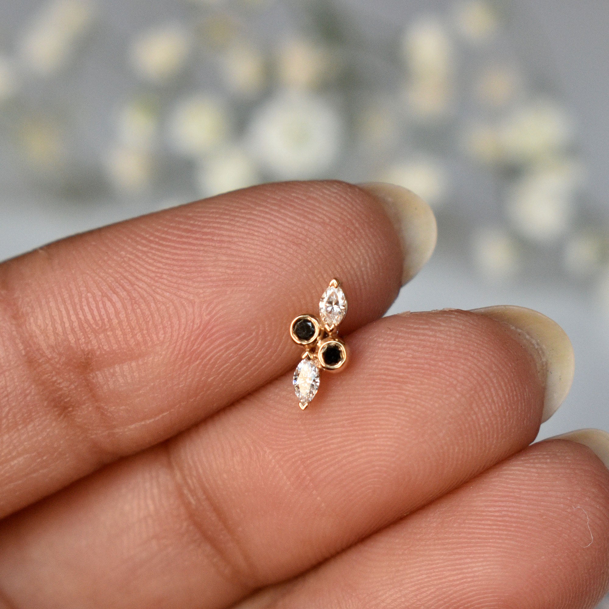 16g Internally Threaded Flatback Diamond Stud, 14k Gold