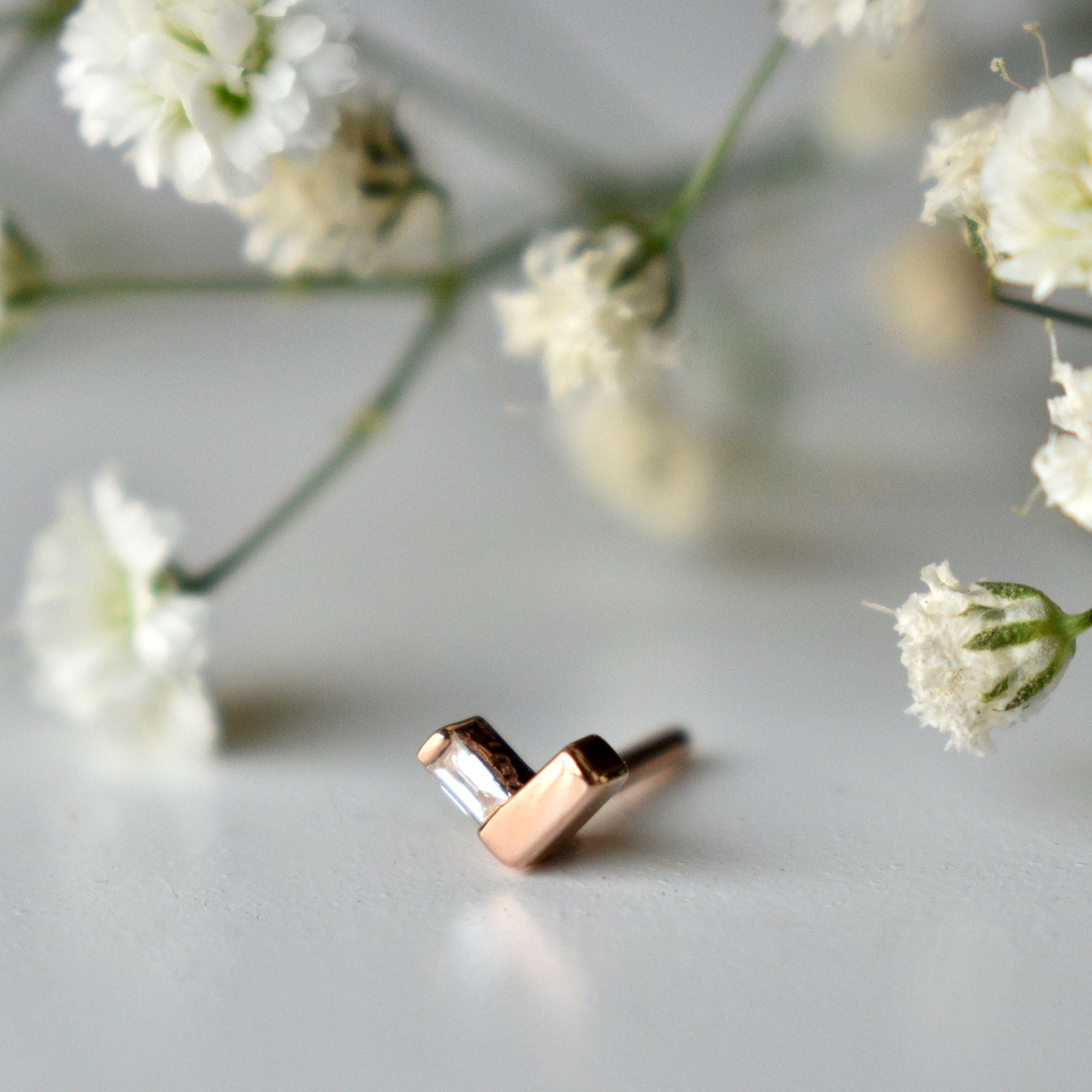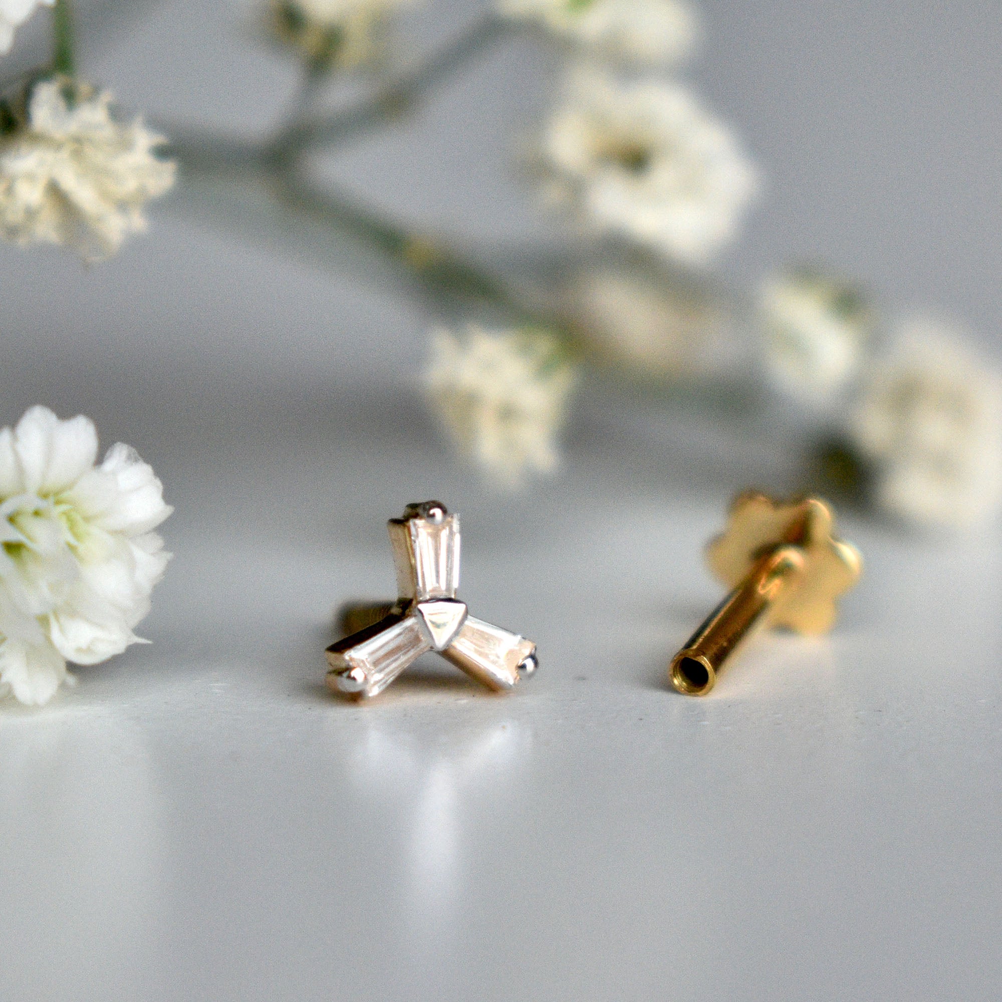 14K Solid Gold 16g Externally Threaded Flatback Diamond Stud
