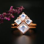 Triangle Moonstone Engagement Ring with Diamond Studded Band