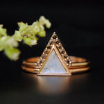 Triangle Moonstone & Smoky Quartz 2pc Wedding Ring Set