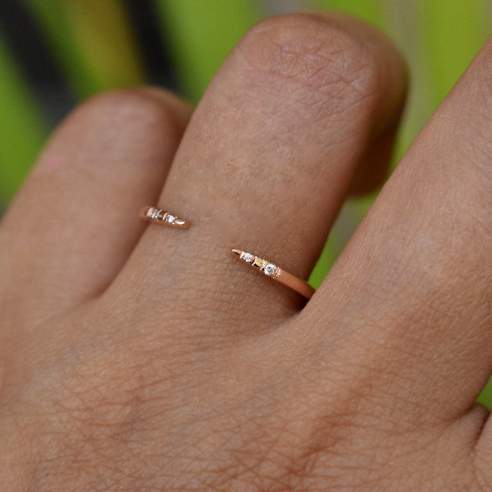 $475.004 pave set diamonds, this dainty open ring is crafted in solid 14k gold. It stacks perfectly flush with your finger touching solitaire rings for the subtle yet complete look....