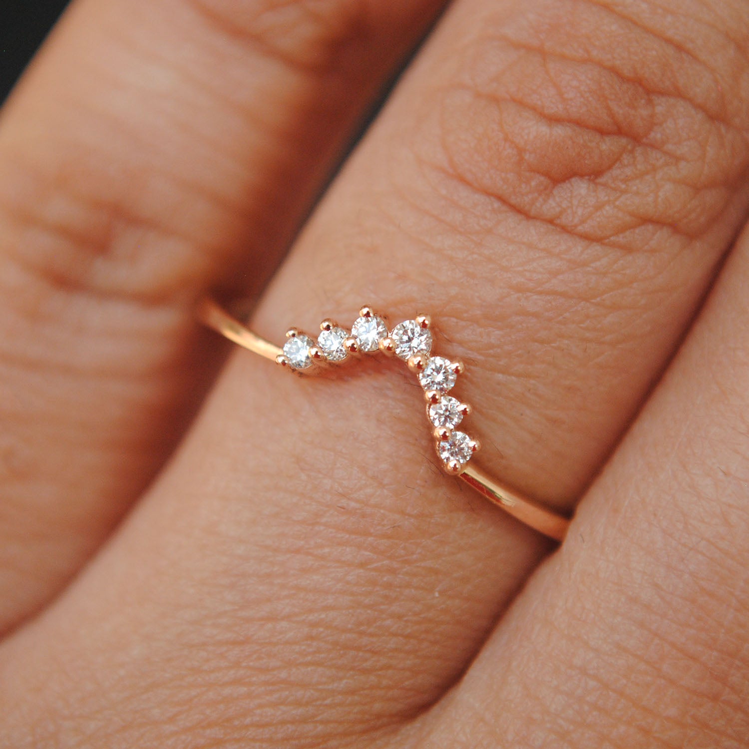 3 Diamond Chevron V Wedding Ring