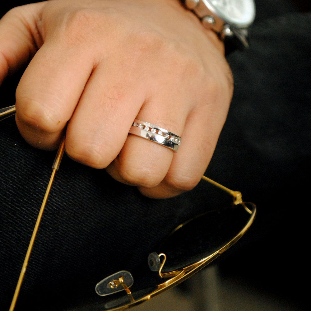 Broad Channel Set Diamond Wedding Band For Men