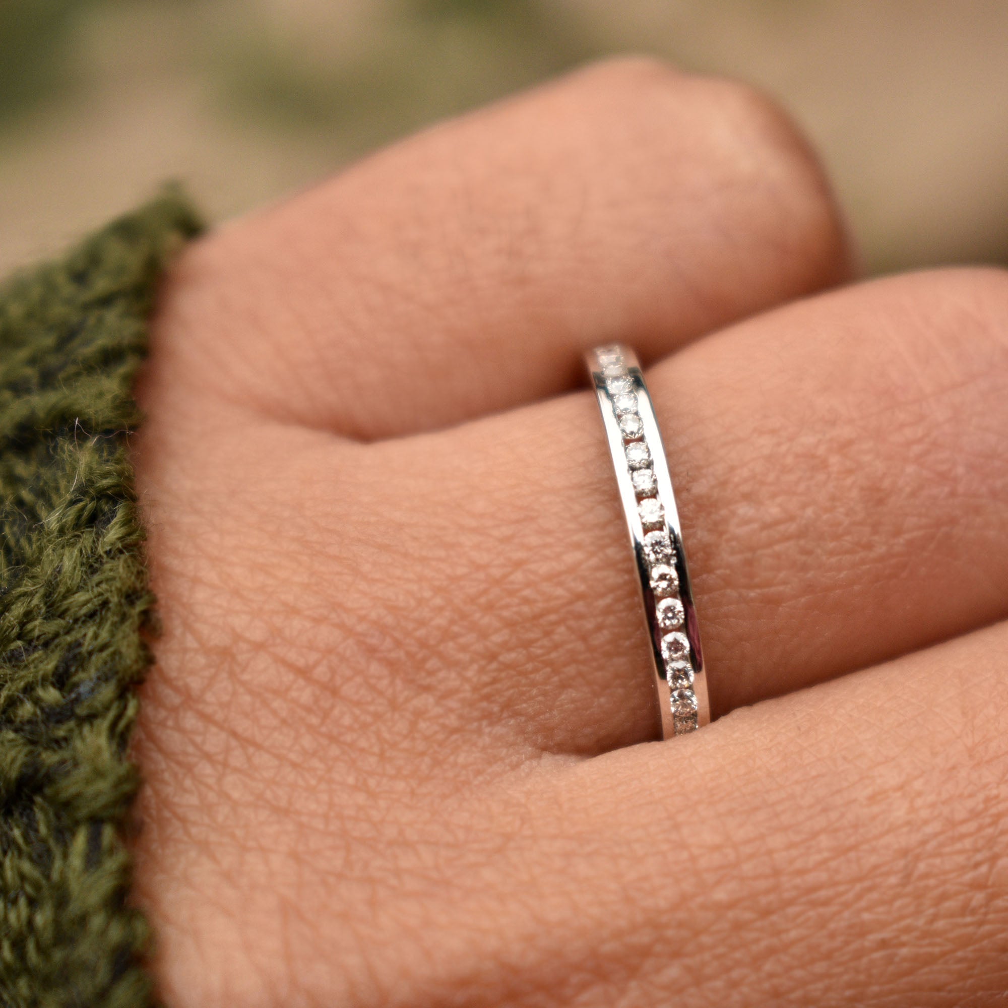 $787.00Classic, evergreen and elegant. This channel set diamond wedding band is a must have. Studded with 1.35mm (0.01ct) diamonds, this is handmade with special care and love for your special...