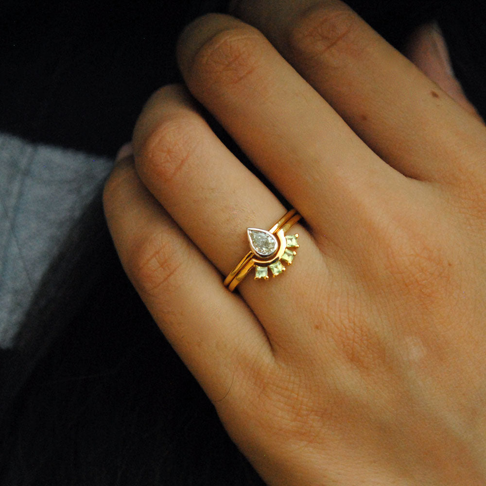 Bezel Pear Diamond Ring and Green Peridot Square Band