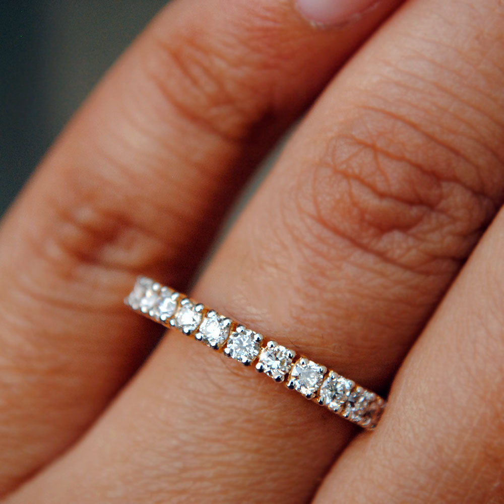$1,300.00Brilliance of 0.045ct diamonds, set individually in 4 prong setting, this band is 2.5mm broad. Set in 14k or 18k solid gold with half carat of diamonds in half eternity,...