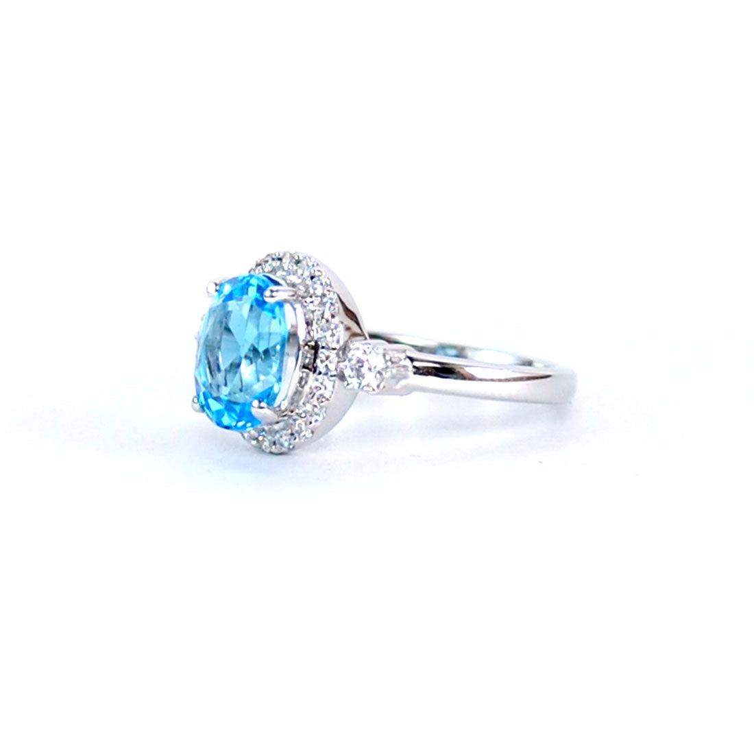 Oval Aquamarine with Diamond Halo Engagement Ring
