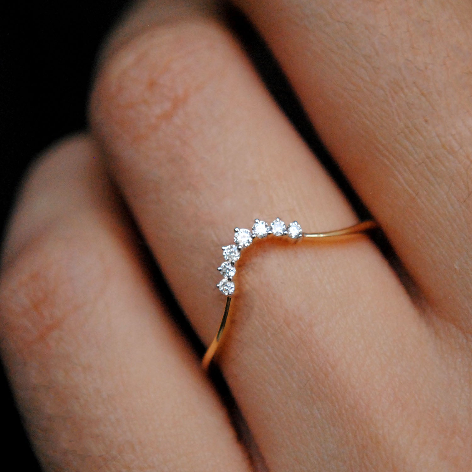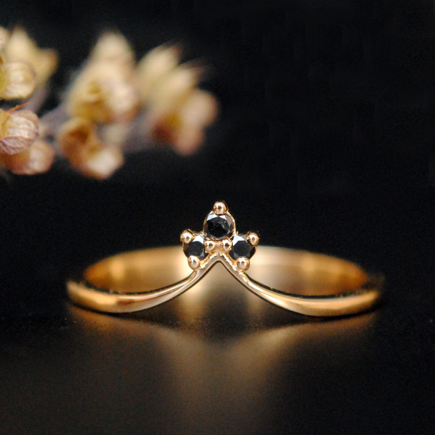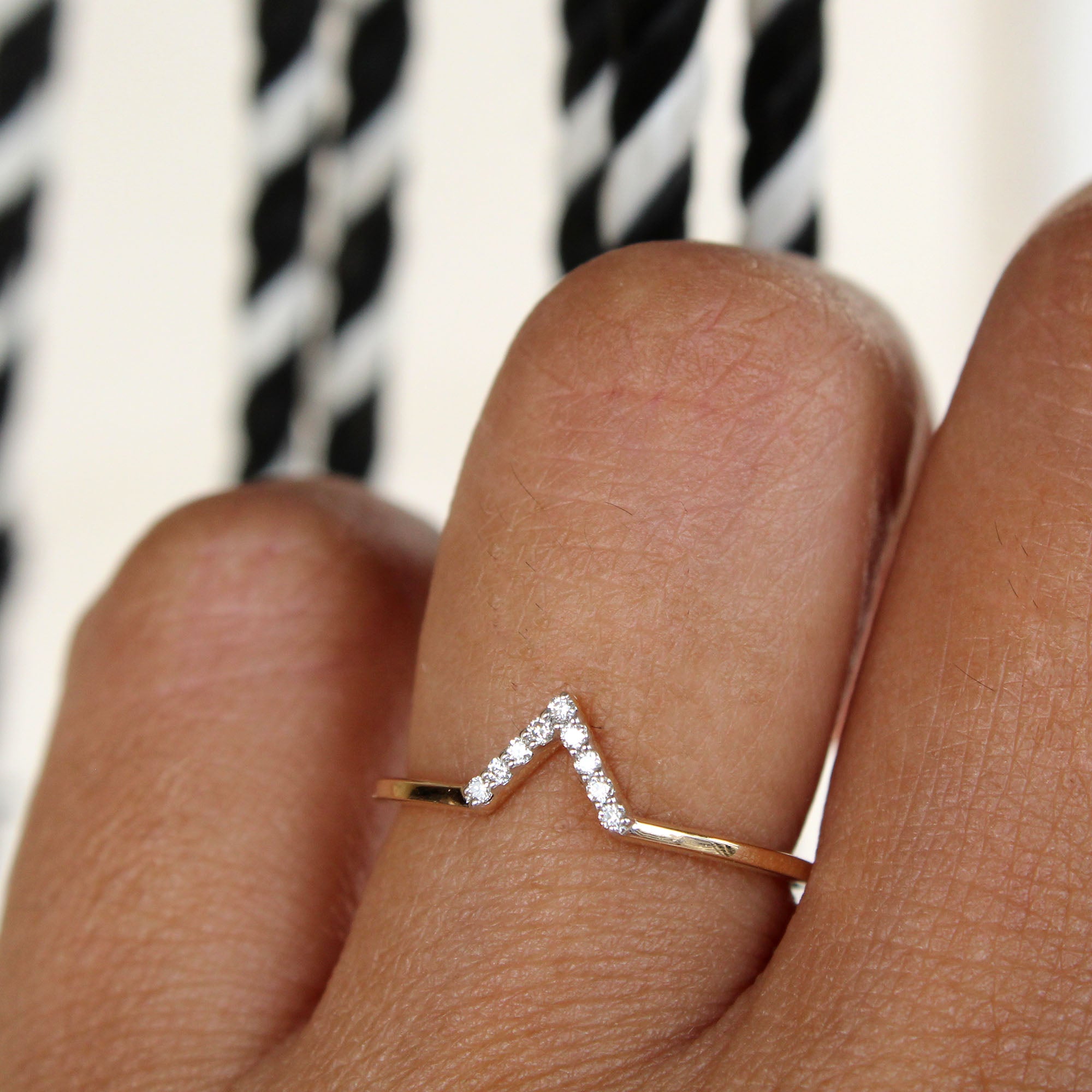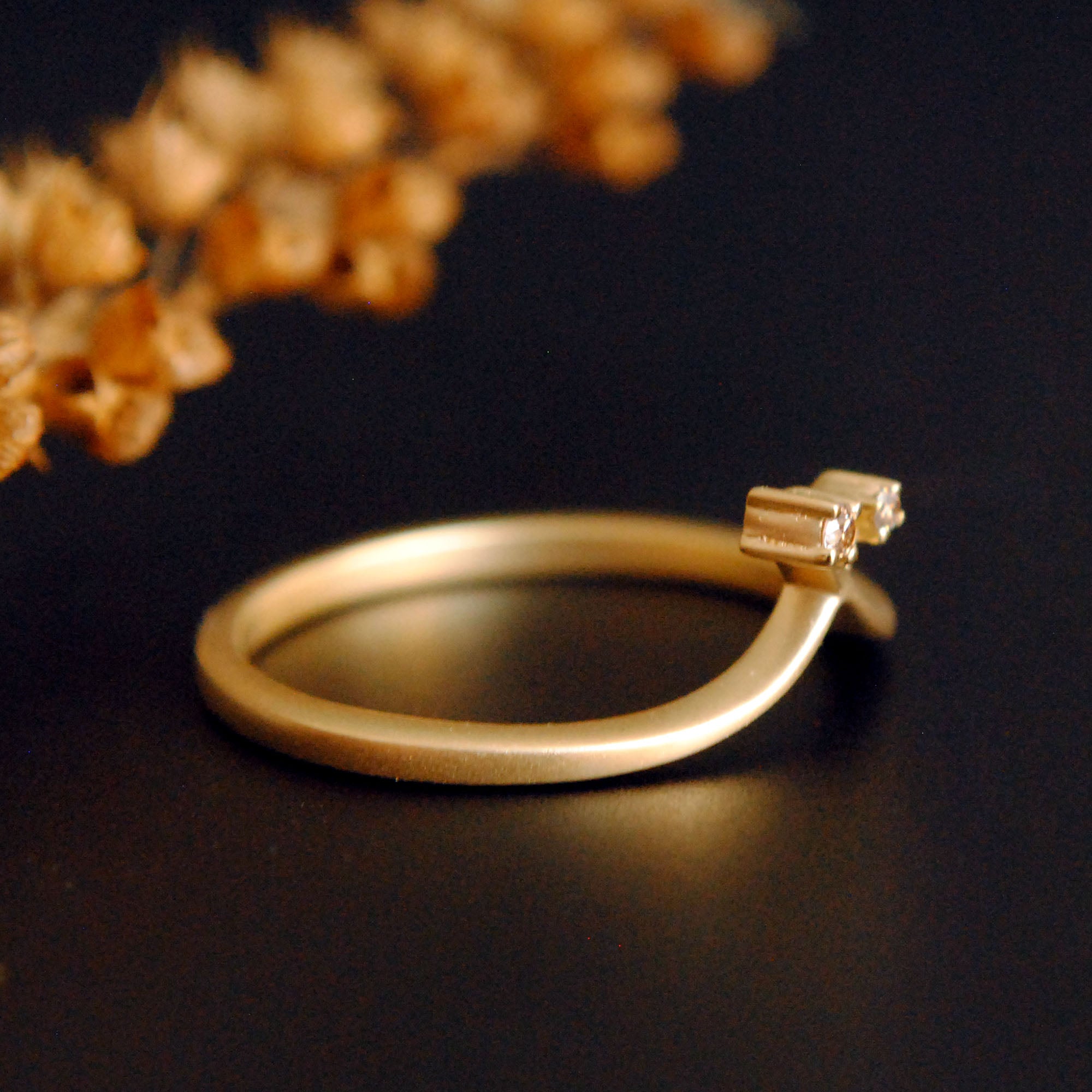 Twin Champagne Diamond Chevron V Ring in Matte Gold