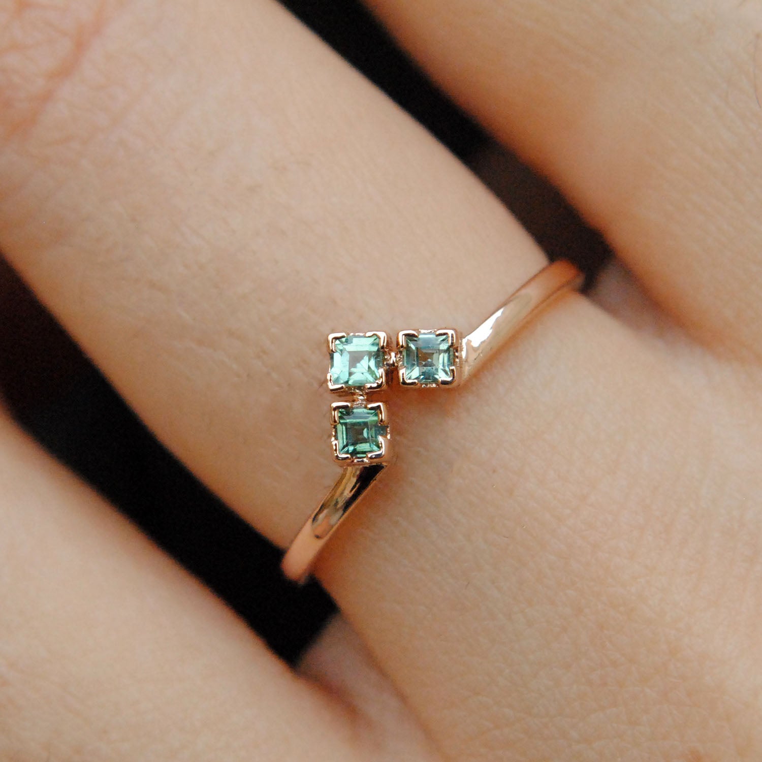 Natural Mint Green Tourmaline Three Stone Wedding Band