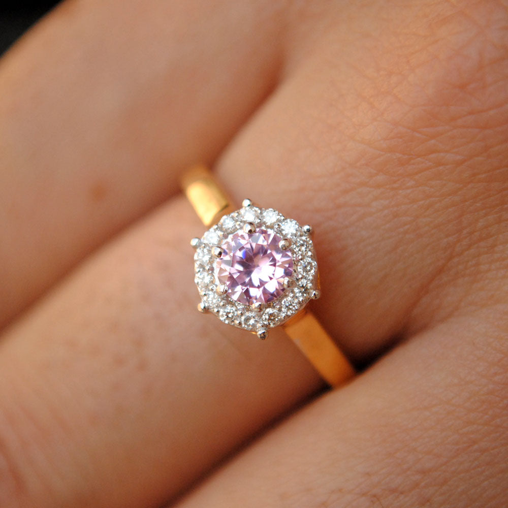 Pink Tourmaline Engagement Ring Diamond Halo Ring