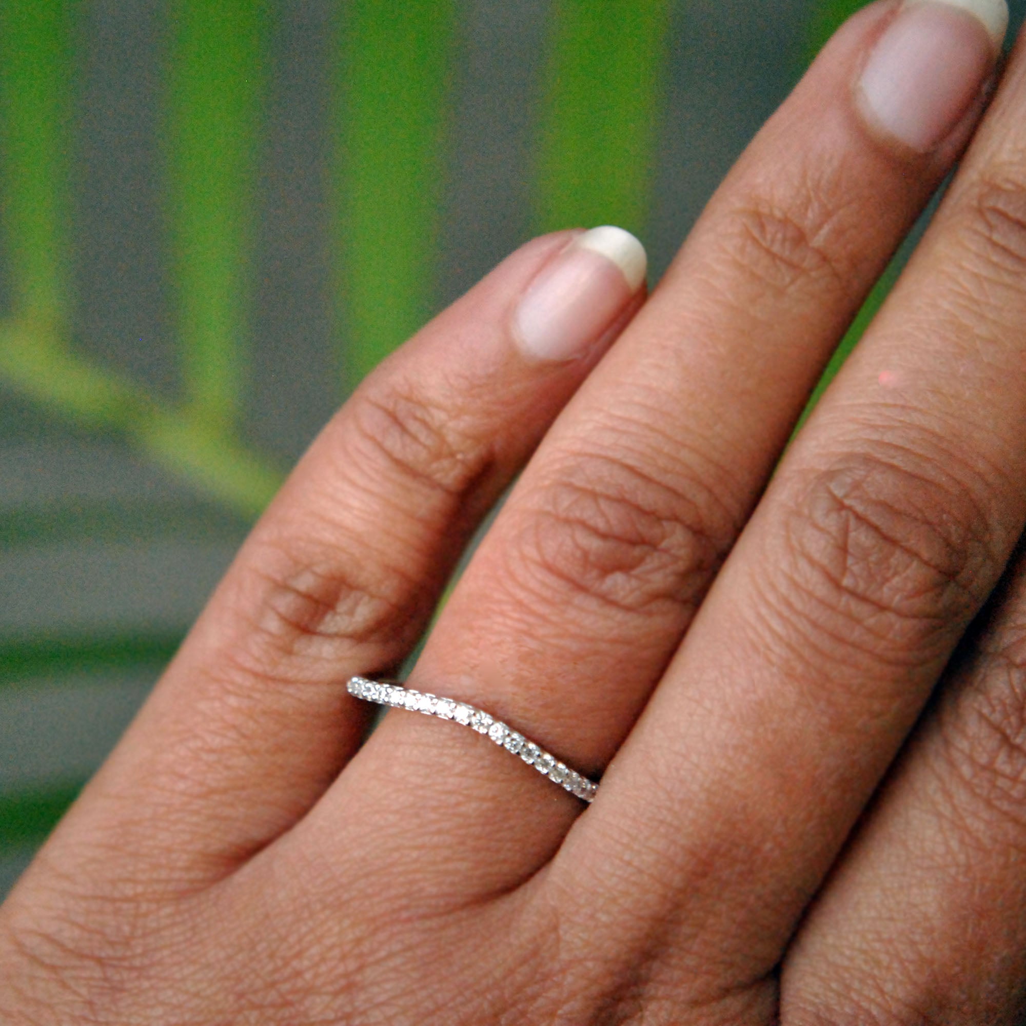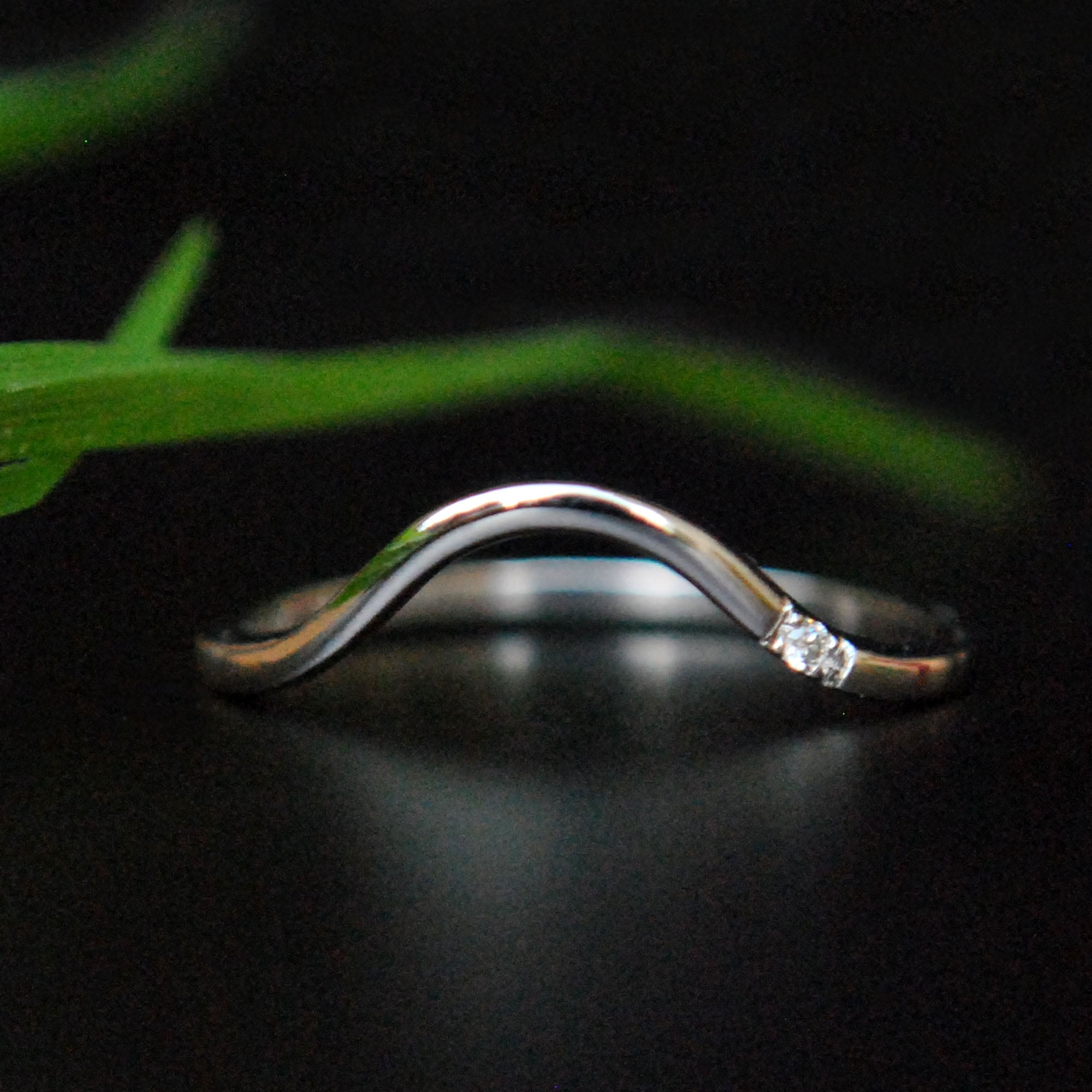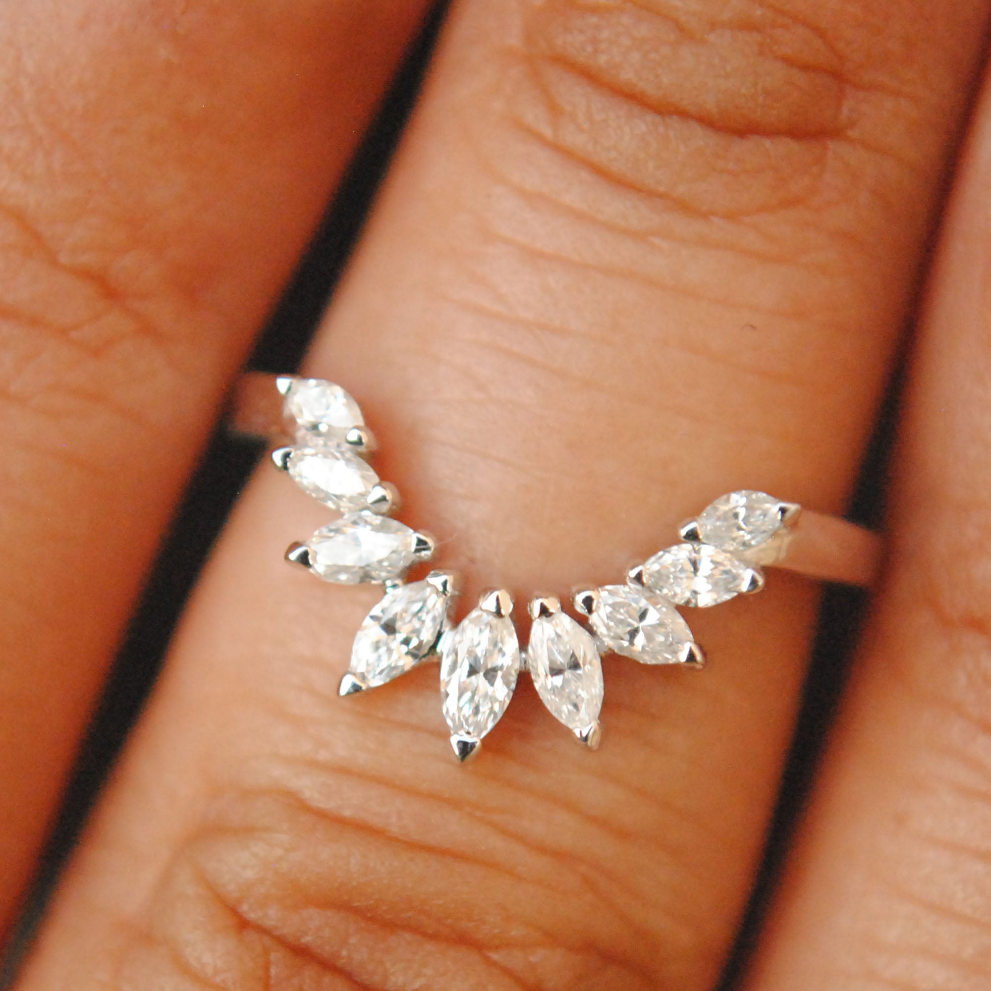 Marquise Pear and Round Diamond Curved Wedding Band, Custom Fit Stack Wedding Ring for Her