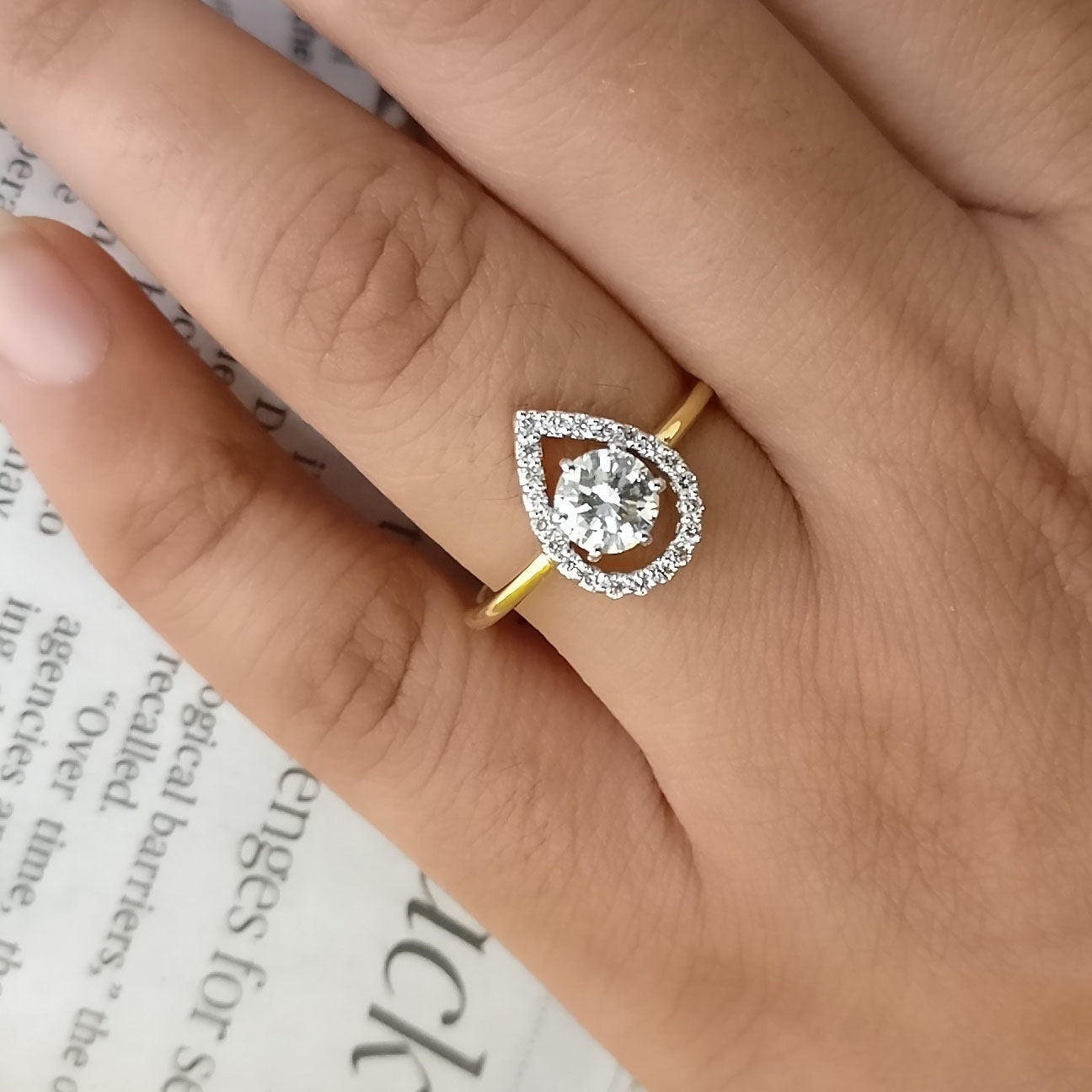 Half Carat Solitaire Diamond Engagement Ring with Unique Pear Halo