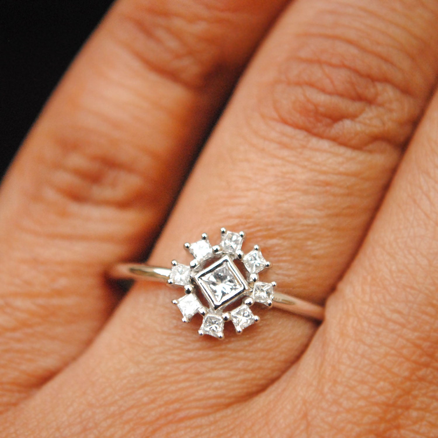 Art Deco Princess Cut Diamond Engagement Ring with Halo