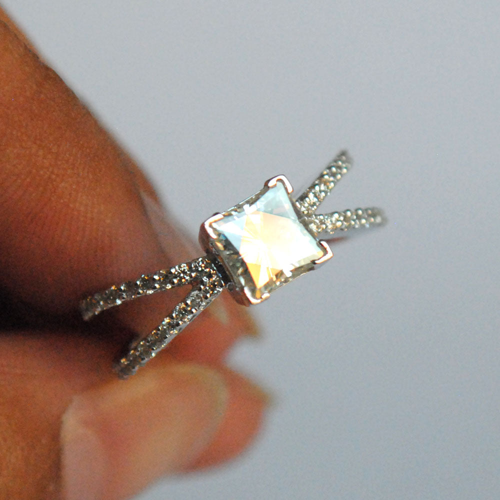 Split Shank Cross Over Double Band 1 Carat Princess cut Moissanite Ring