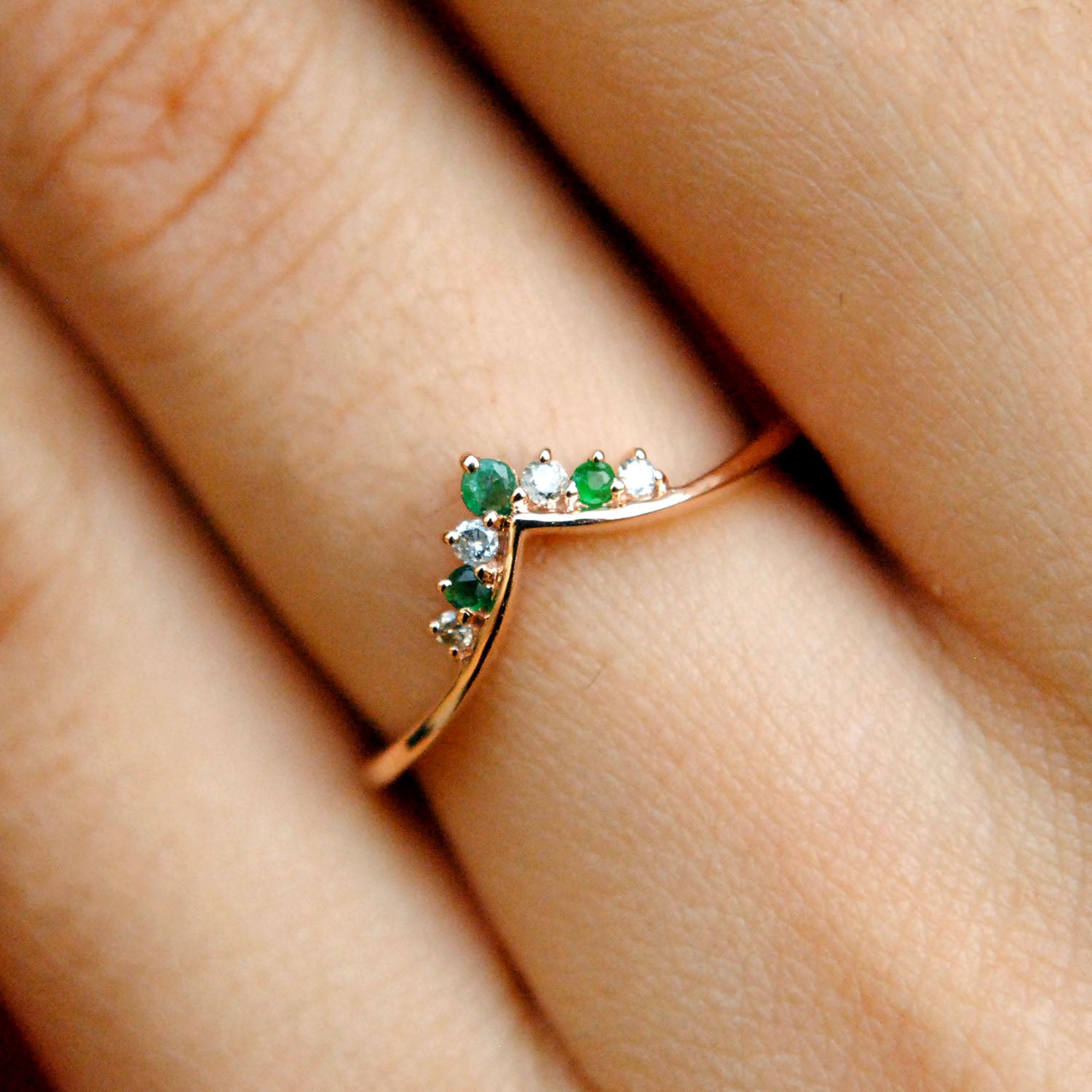 $550.00A gorgeous and colorful V ring, with alternating salt and pepper diamonds and natural emeralds and will add a unique touch to your engagement ring. This ring looks stunning worn...