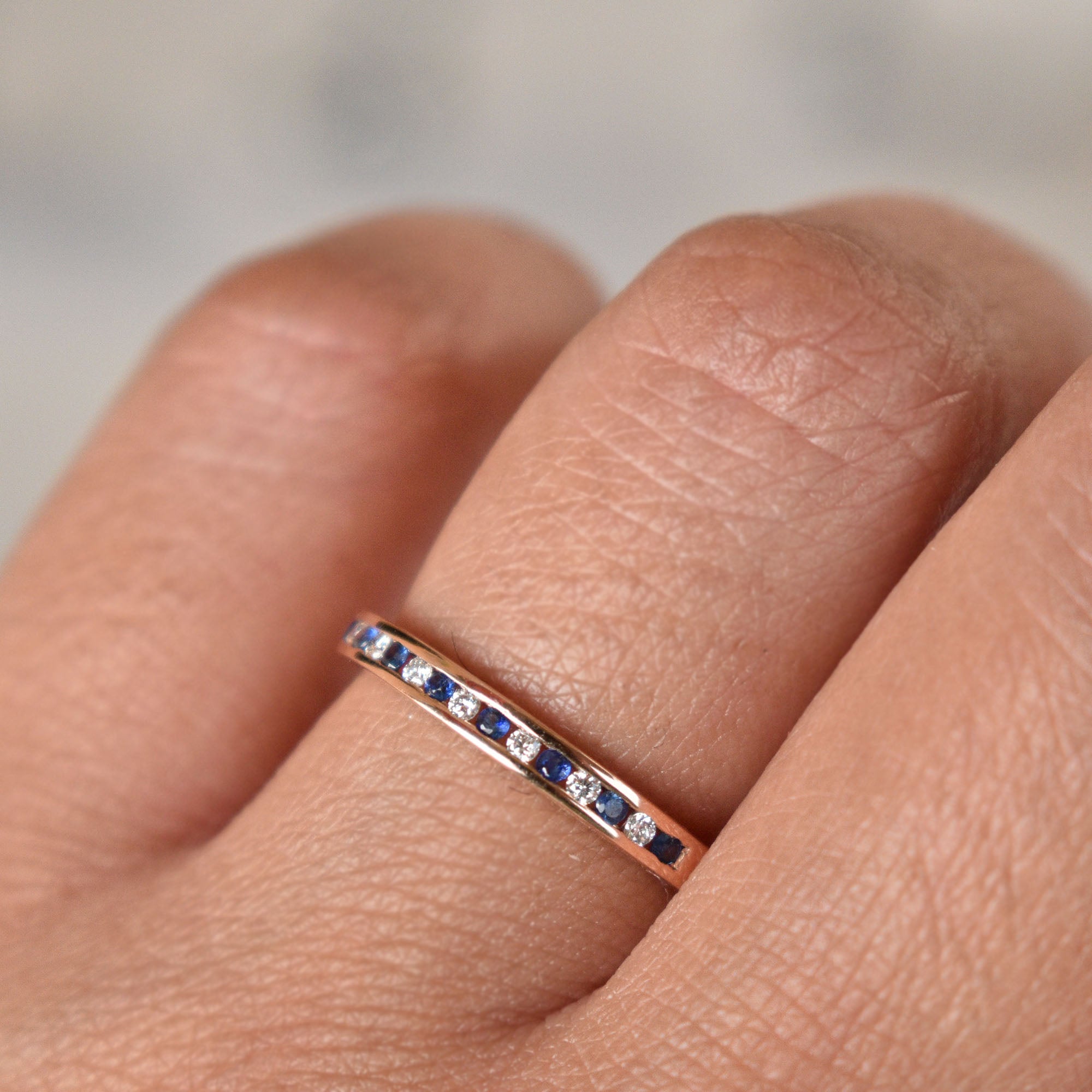2mm Channel Set Diamond and Blue Sapphire Wedding Band