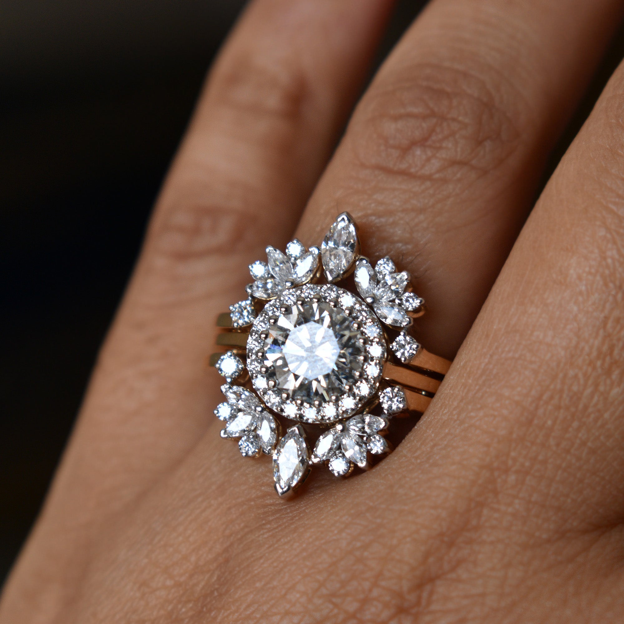 1.5 Carat Moissanite Solitiare Halo Ring with Lotus Ring Enhancer