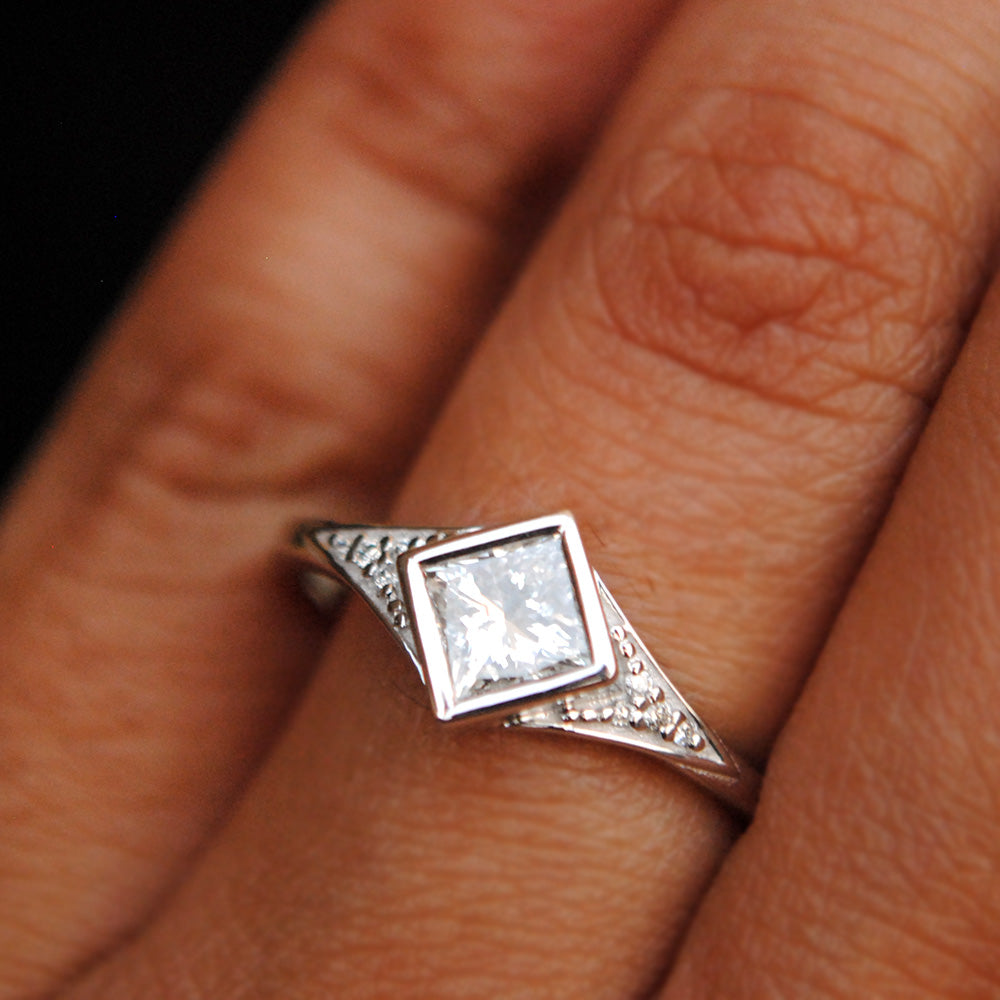 $2,375.00Vintage inspired princess cut diamond ring with a pave accents, this deco ring will set her a class apart with its uniqueness and versatility. It will also make for a...