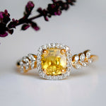 Yellow Sapphire with Diamond Halo Engagement Ring