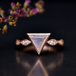 Triangle Moonstone Engagement Ring with Diamond Studded Band