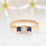 beautiful emerald cut diamond, set east west in prong setting on a Cadbury 14k gold band. The sweetest gift for the sweetest valentine. Classic yet unique!