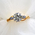 Cushion Cut Art Deco Engagement Ring. 14K Gold Cushion & Round Diamond Ring