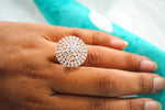 Diamond studded X ring, enhanced by accent diamonds, for that unique twist to your regular criss cross. This ring is meticulously handcrafted in 14kt solid yellow gold and is perfect for your evening ensemble and a sure head turner.