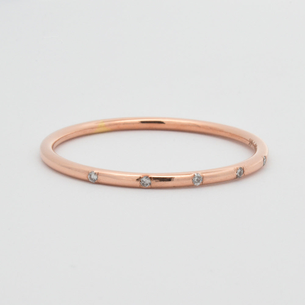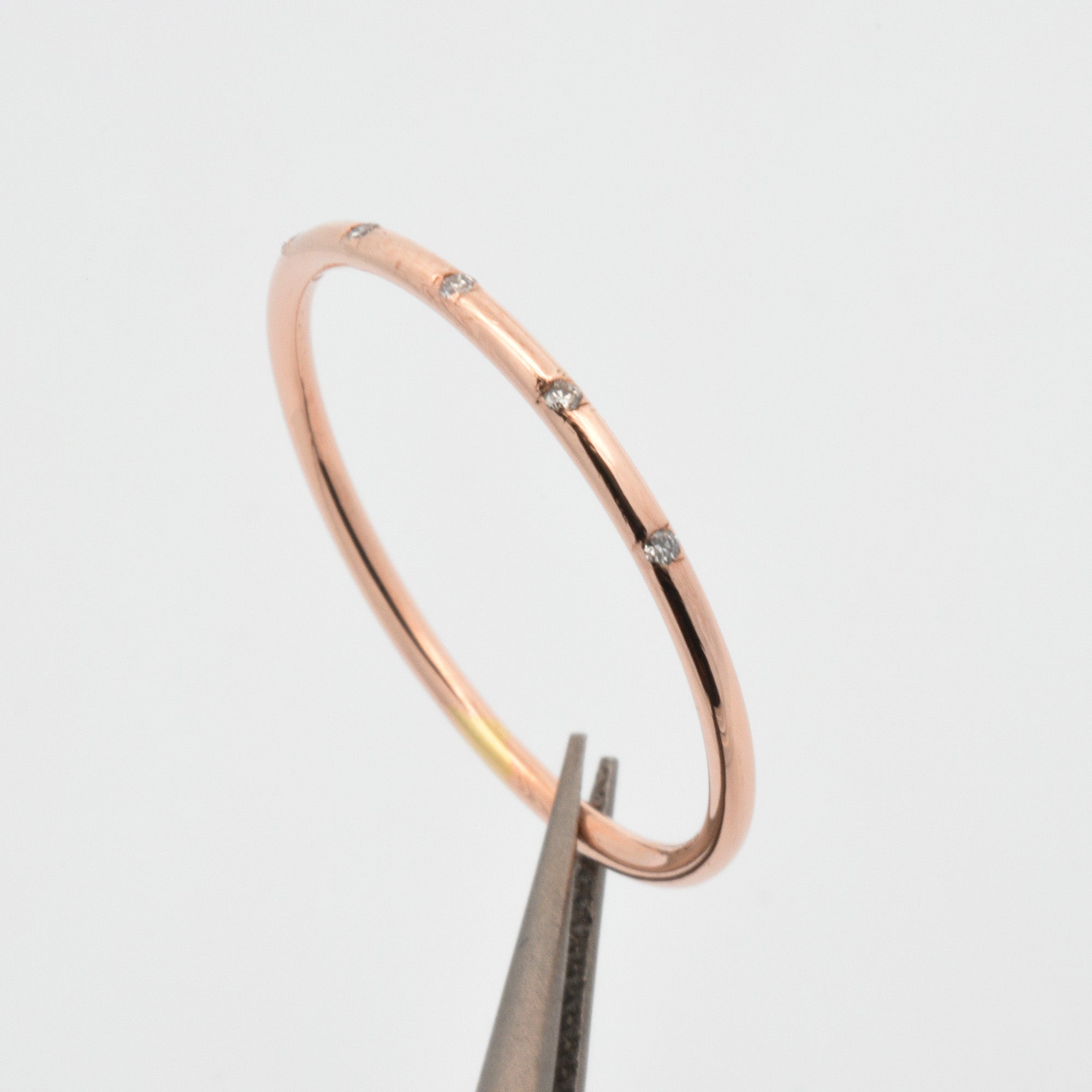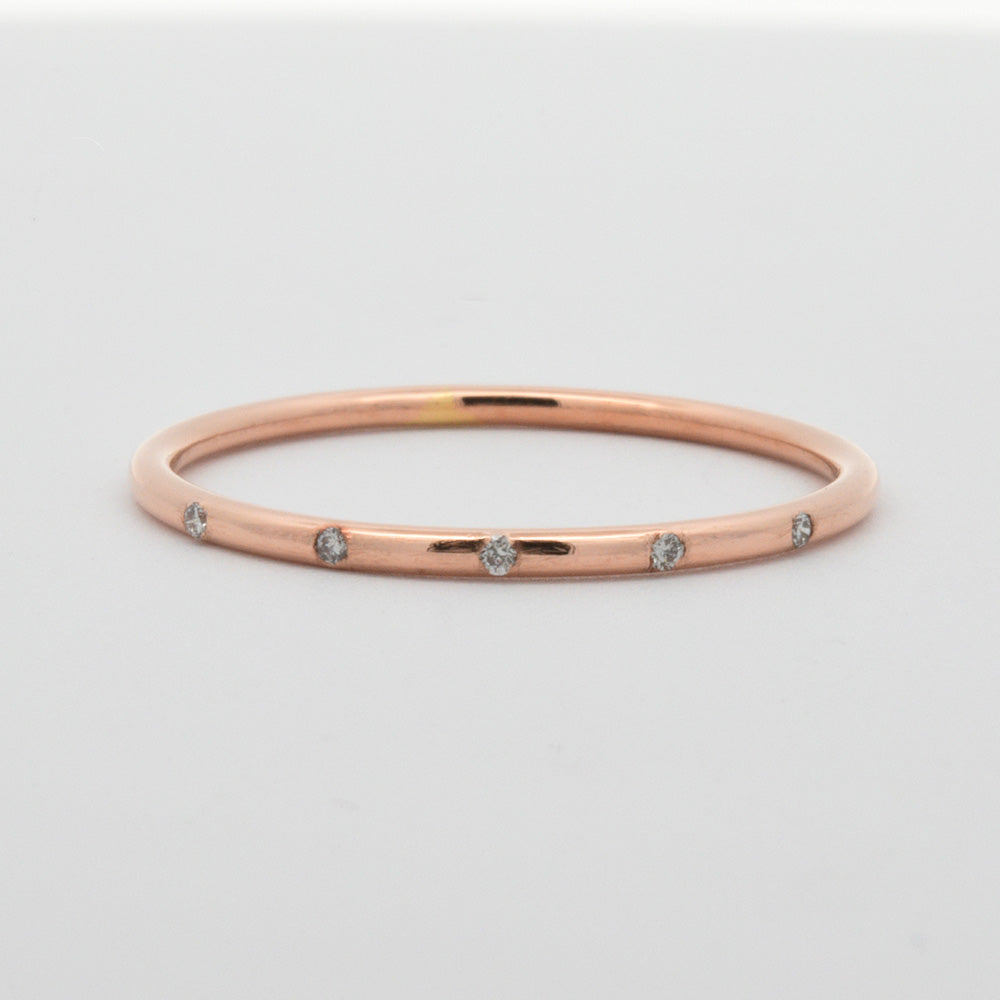US 7.5 14k Rose Gold 1mm Flush Set 5 Diamond Band