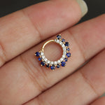 6-12mm Crescent Blue Sapphire & Diamond Septum Daith Ring