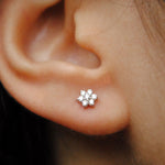 14K Solid Gold 16g Externally Threaded Flatback Diamond Stud